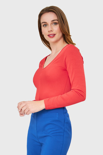 Características: Body manga larga con escote en V. Calzón estilo colaless con broche en la entrepierna. Tela acanalada.