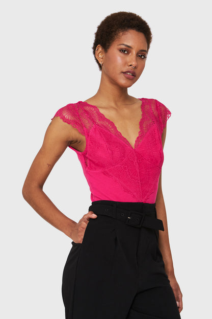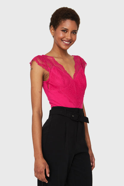 Body Canesú Encaje Fucsia