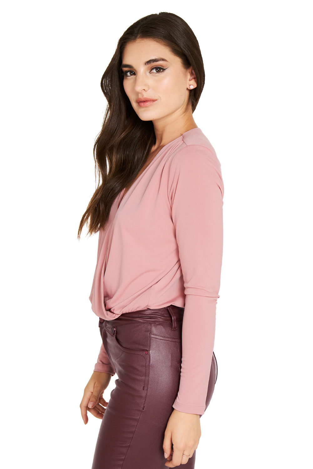 Características: Body manga larga con escote cruzado. Detalle de pinzas en los hombros. Broche de ajuste en el escote. Calzón tipo tanga con broche en entrepierna.