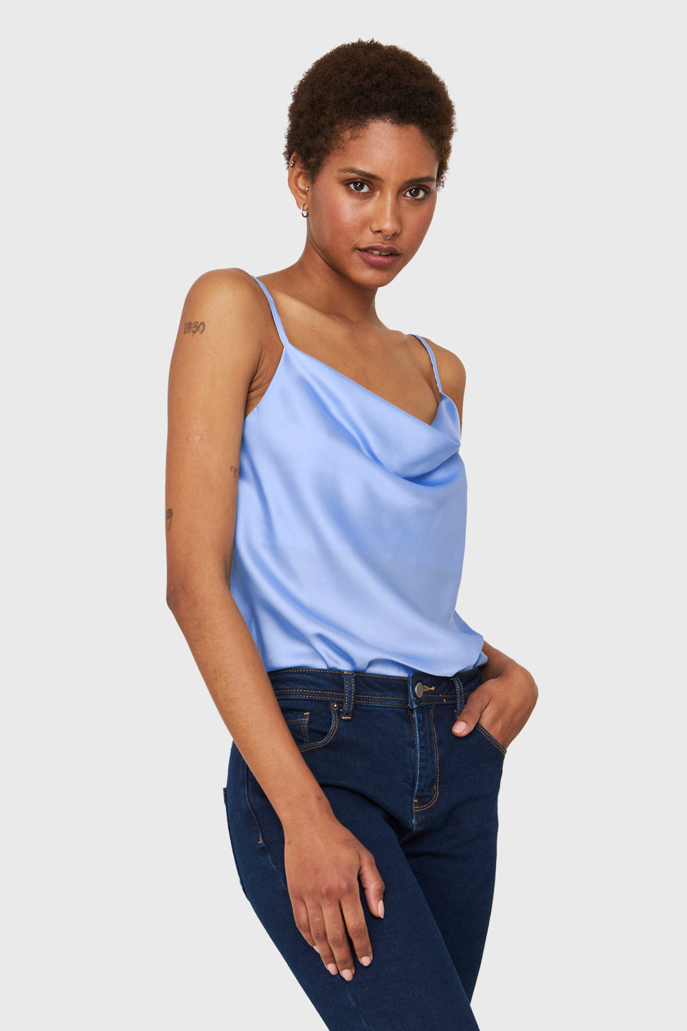 Características: Body tipo satín, tirantes pabilo ajustables. Escote drapeado. Calzón de maya estilo colaless con broche en la entrepierna.