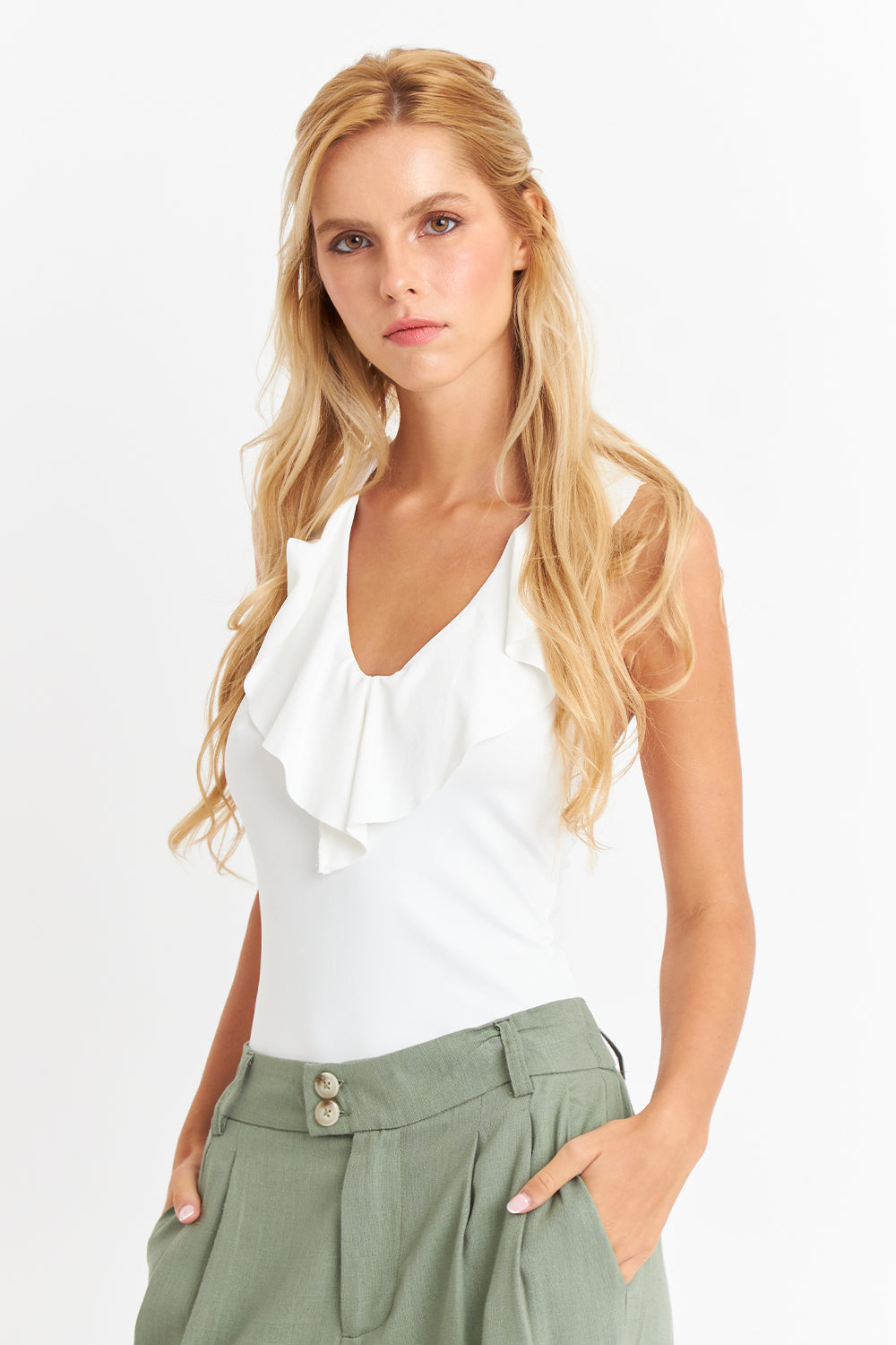 Características: Body Elasticado con volantes en el escote, Broche Remache Presión invisible en la parte inferior del body.