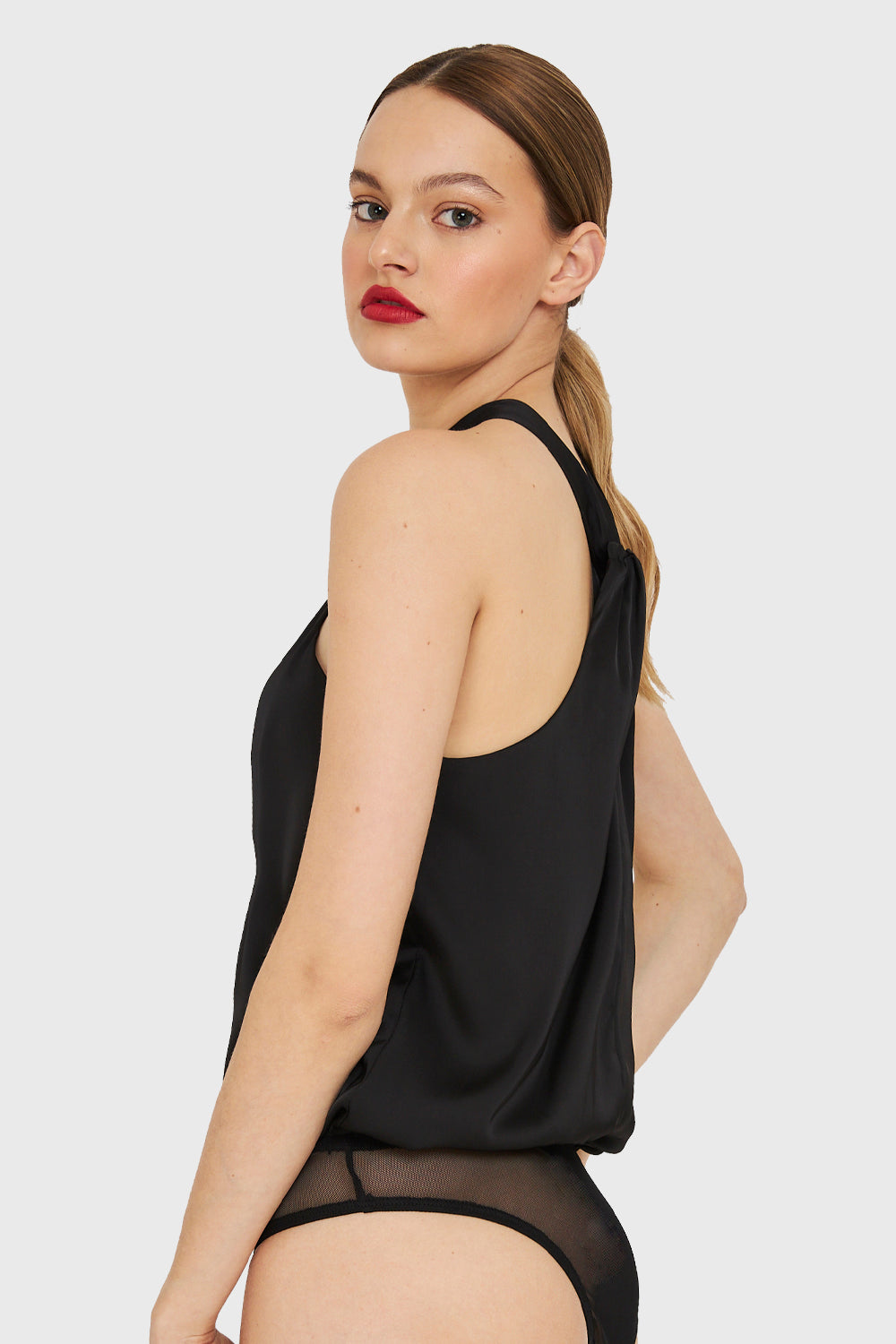 Características: Body de cuello halter con cut out. Posee broches de ajuste en el calzón.