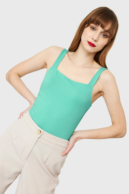 Características: Body tirante ancho con escote cuadrado elasticado. Broche en entrepierna y calzón normal.