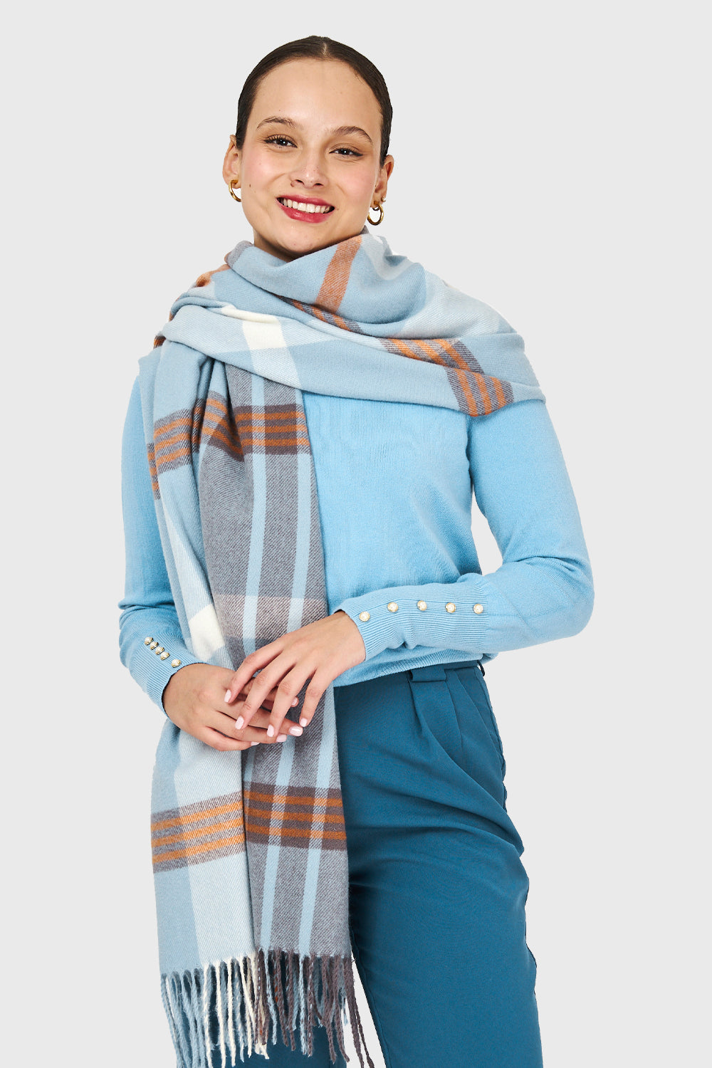 Características: Bufanda rectangular con flecos. Diseño cuadrillé.