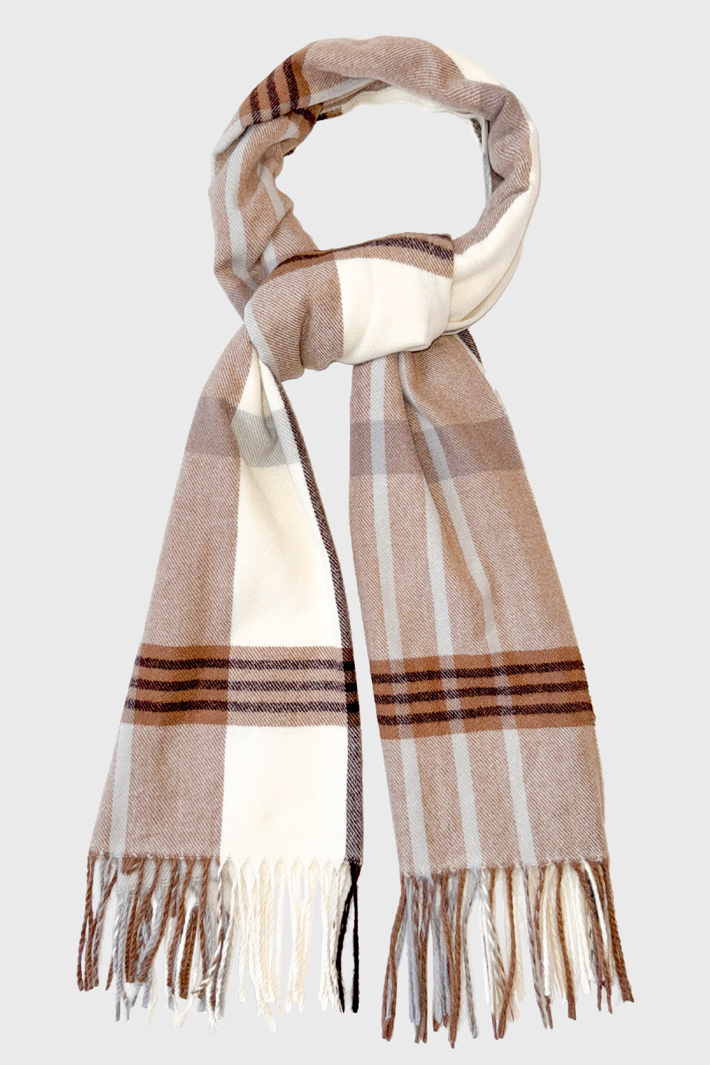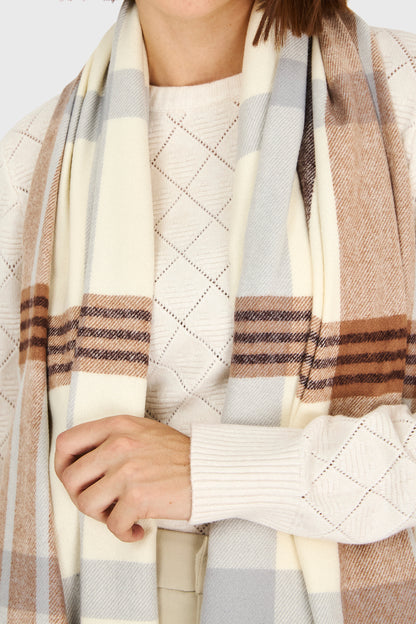 Características: Bufanda rectangular con flecos. Diseño cuadrillé.