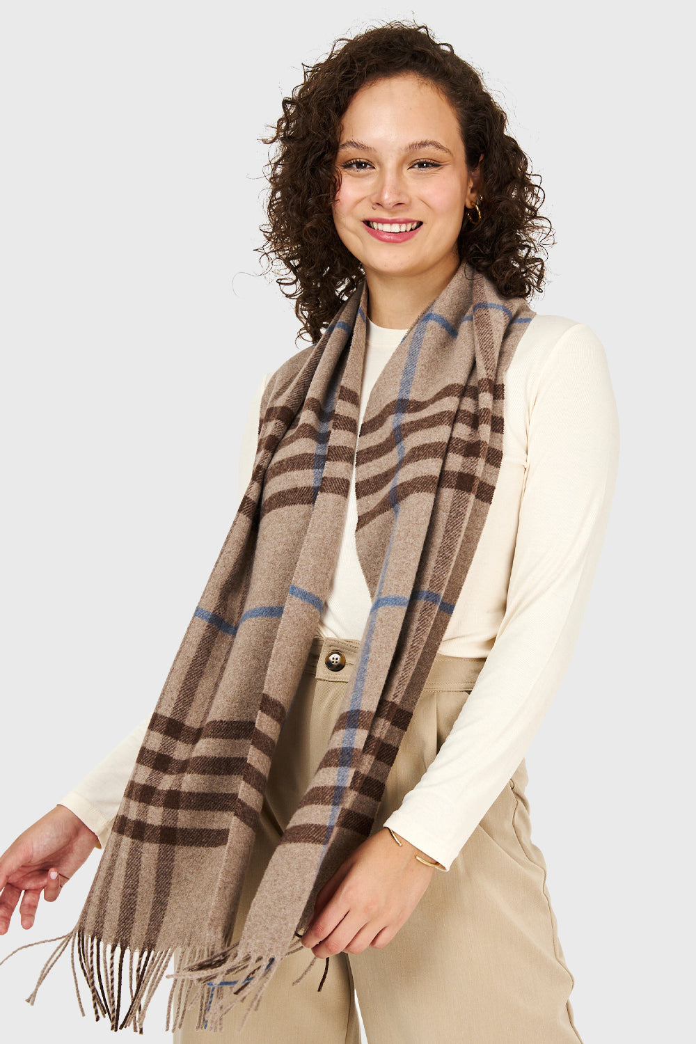 Características: Bufanda rectangular con flecos. Diseño cuadrillé.