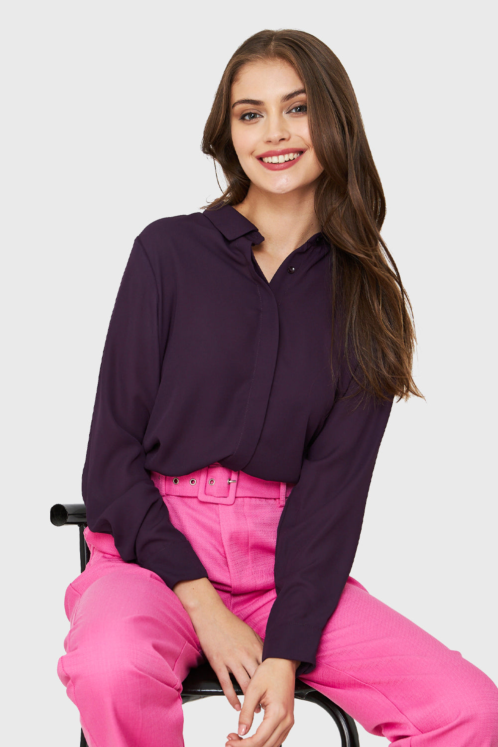 Blusa Básica Botonera Invisible Morado