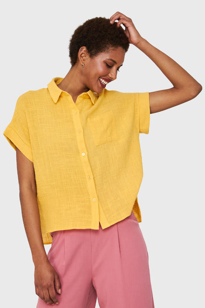 Características: Camisa con bolsillo frontal y manga corta. Botones de ajuste en la parte central delantera.