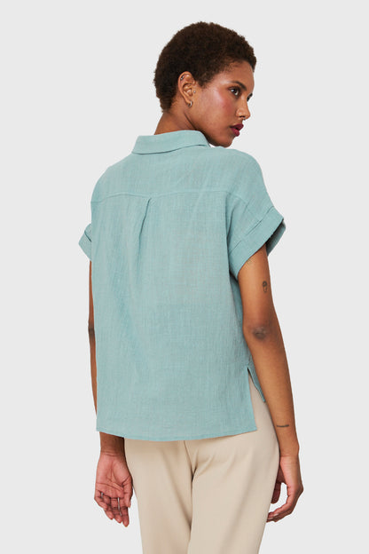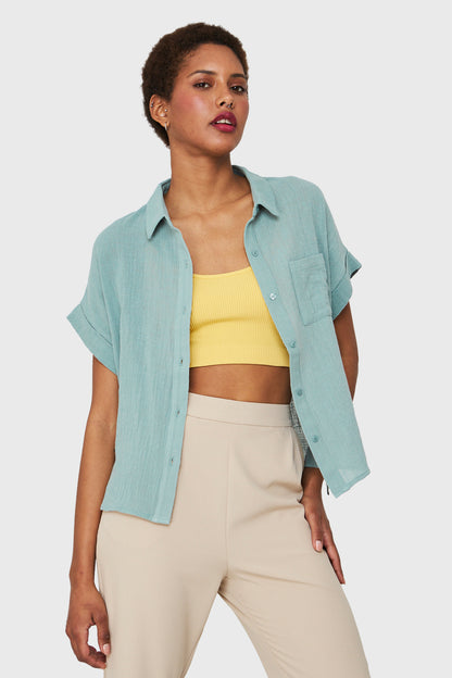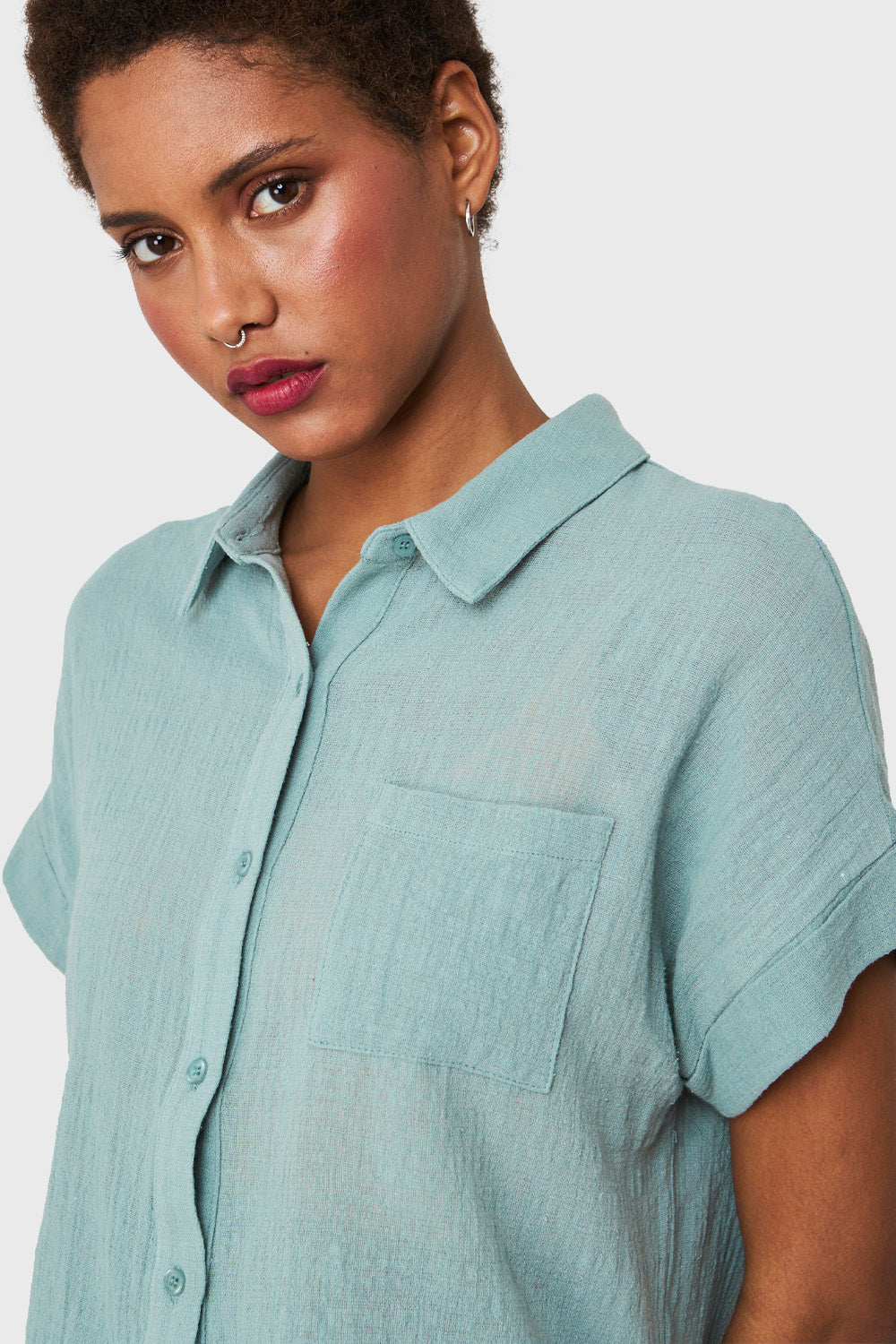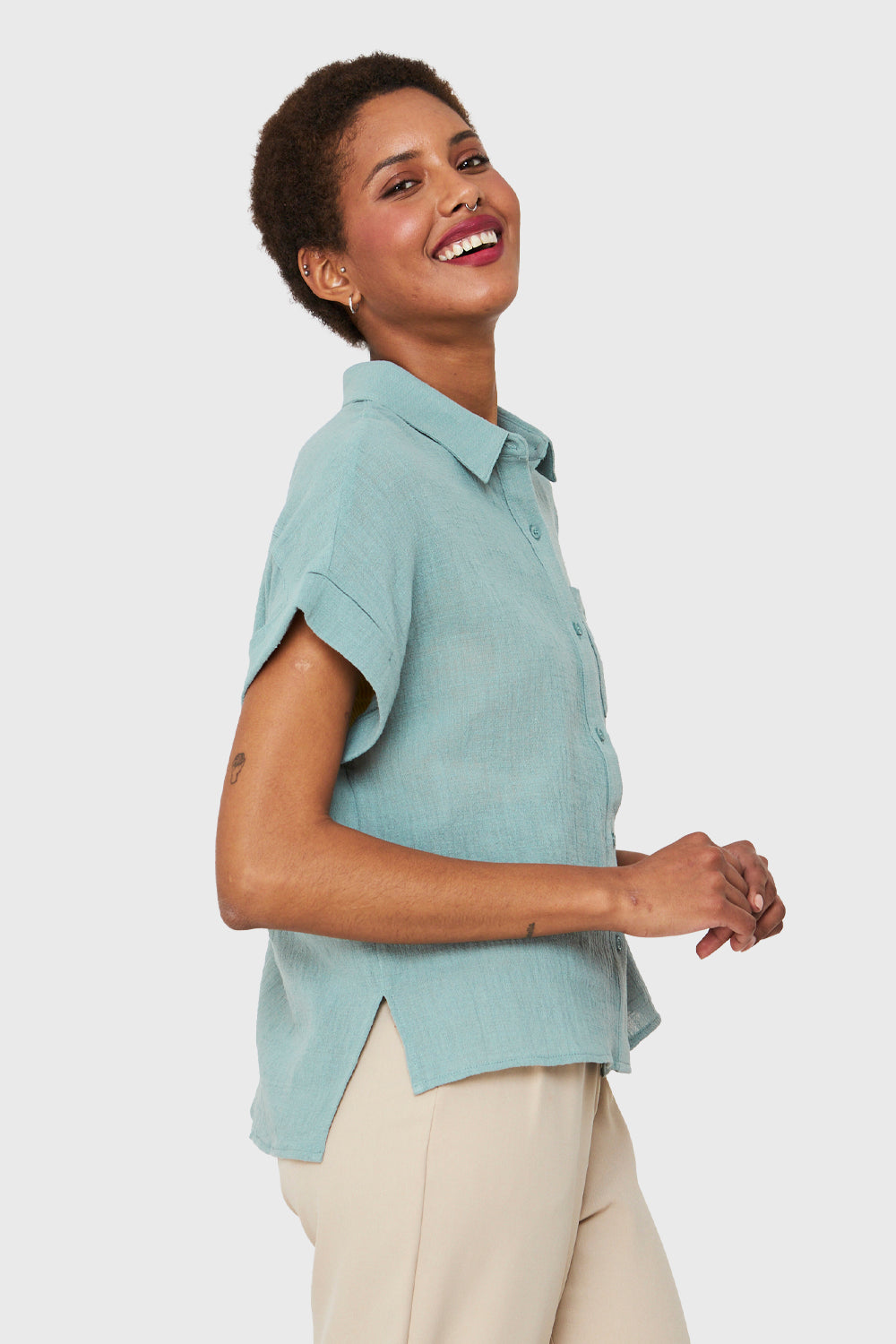 Características: Camisa con bolsillo frontal y manga corta. Botones de ajuste en la parte central delantera.