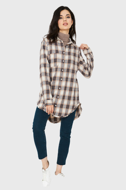 Características: Camisa cuadrillé terminaciones redondas con flecos en la parte baja. Posee bolsillos frontales y botones de ajustes.