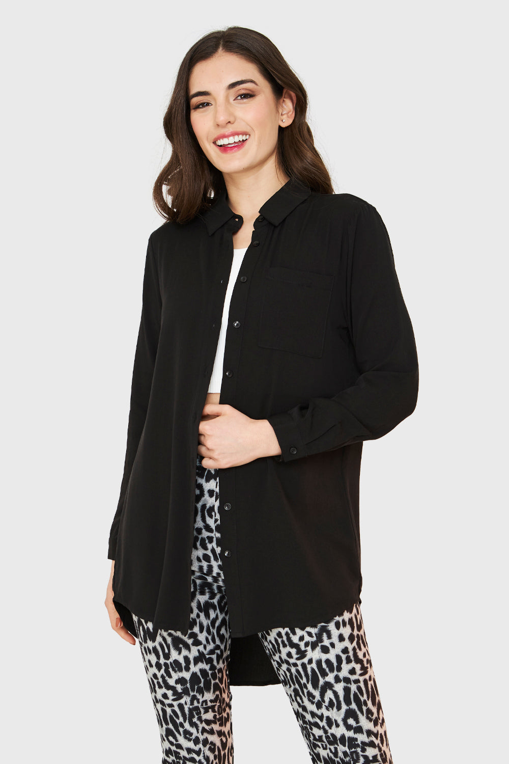 Camisa Larga Bolsillo Negro