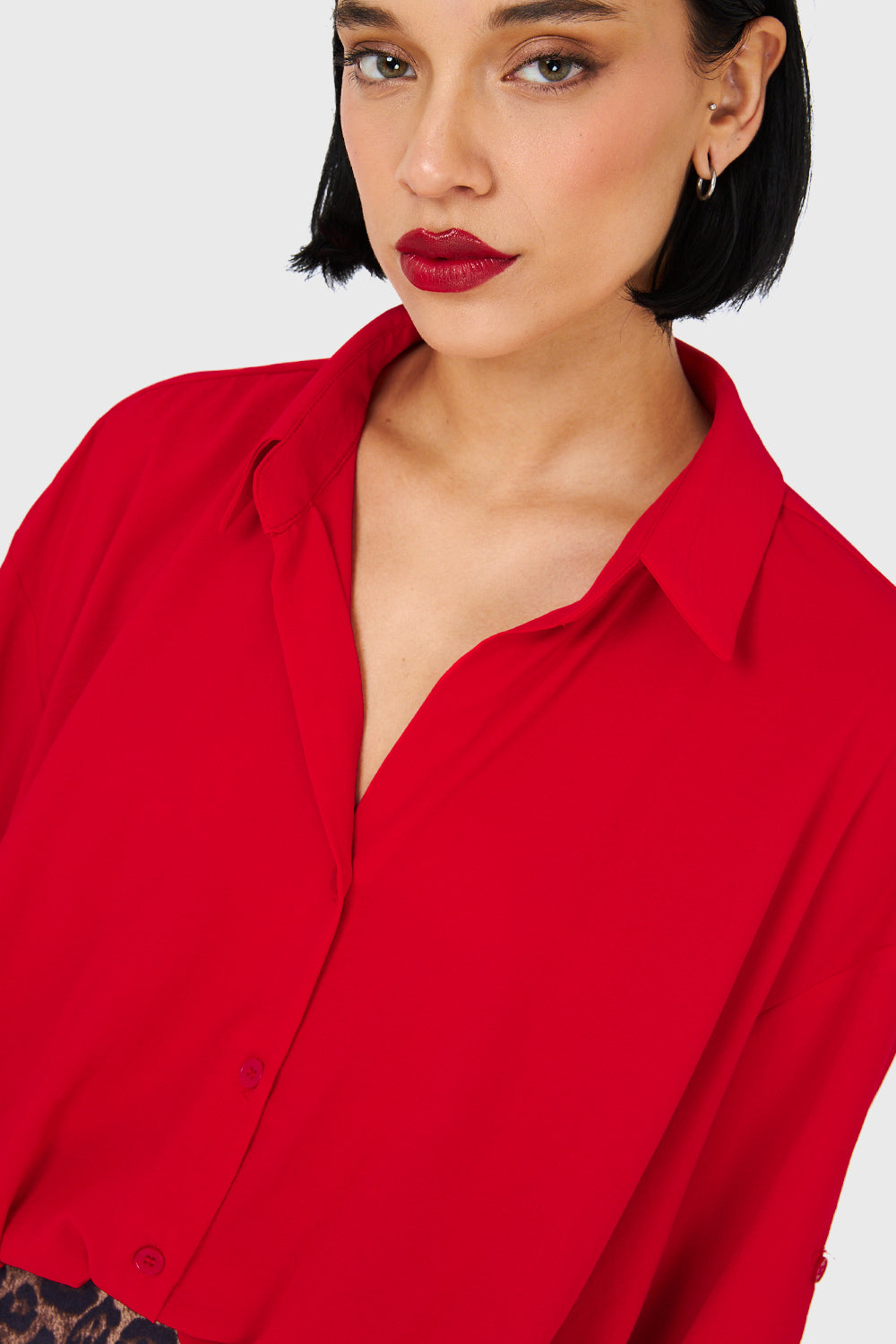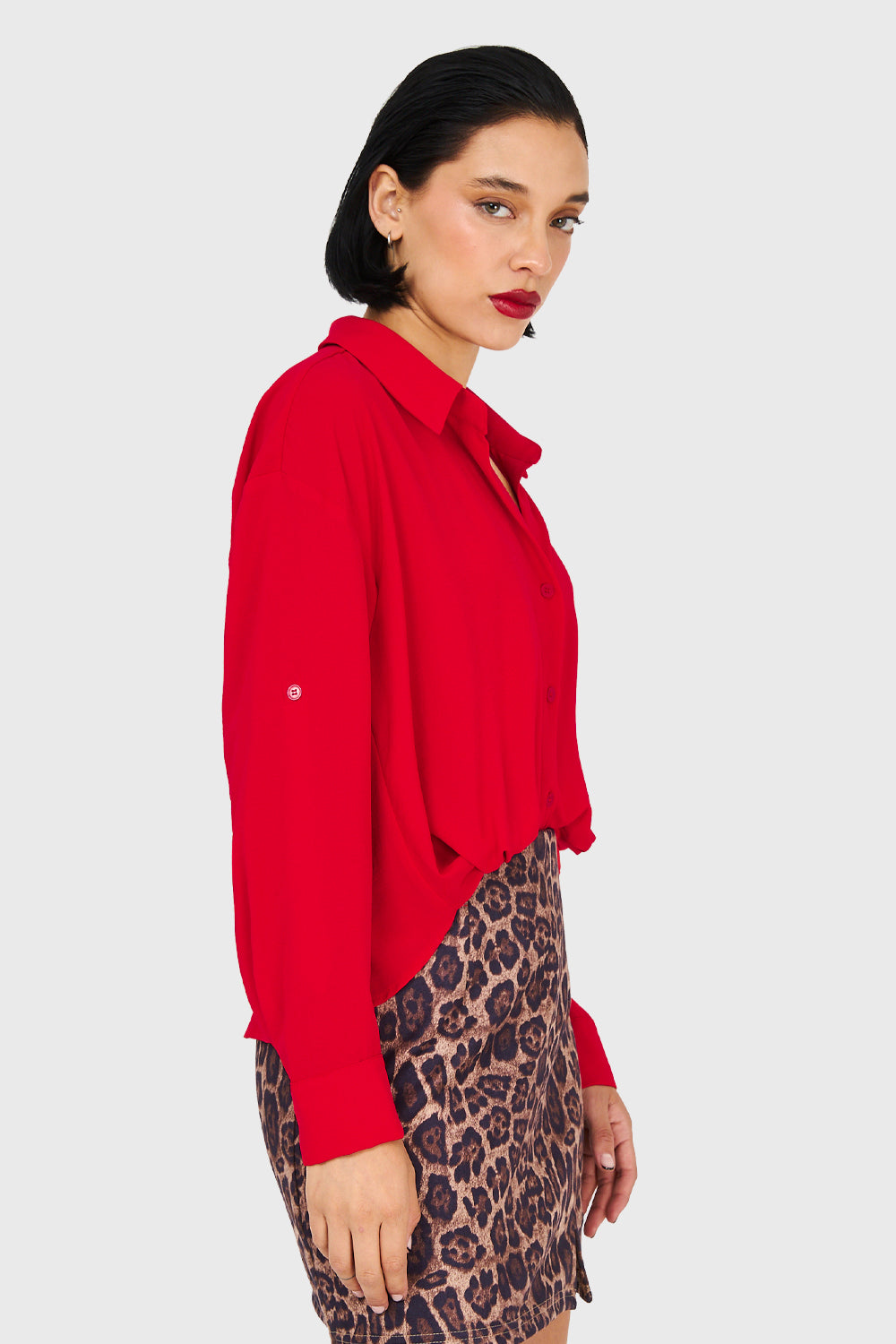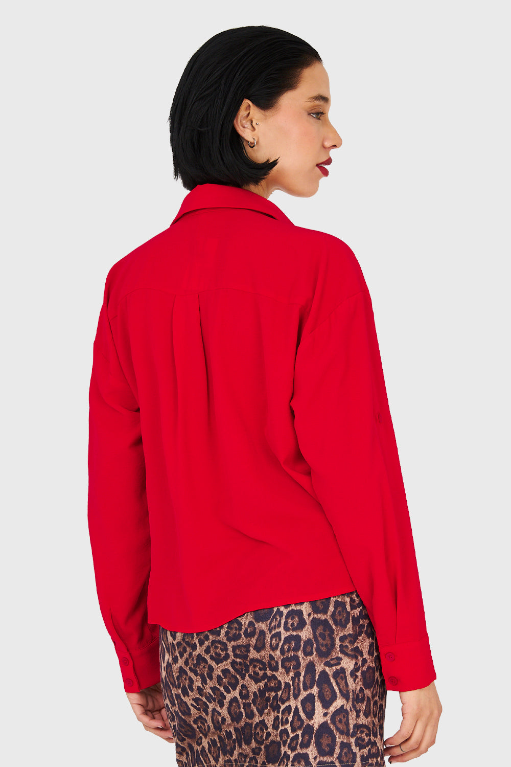 Características: Camisa semi corta, su parte delantera termina simulando un nudo. Puño recto y dos botones de ajuste. Abertura de puño tipo ribete. Botón de ajuste en el brazo para el largo de la manga.