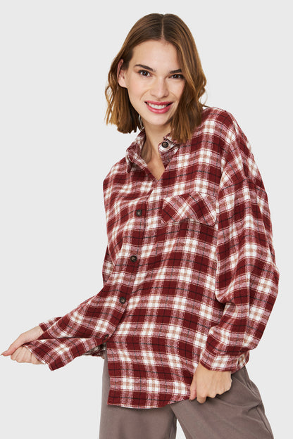 Camisa Tipo Franela Cuadrillé Burdeos