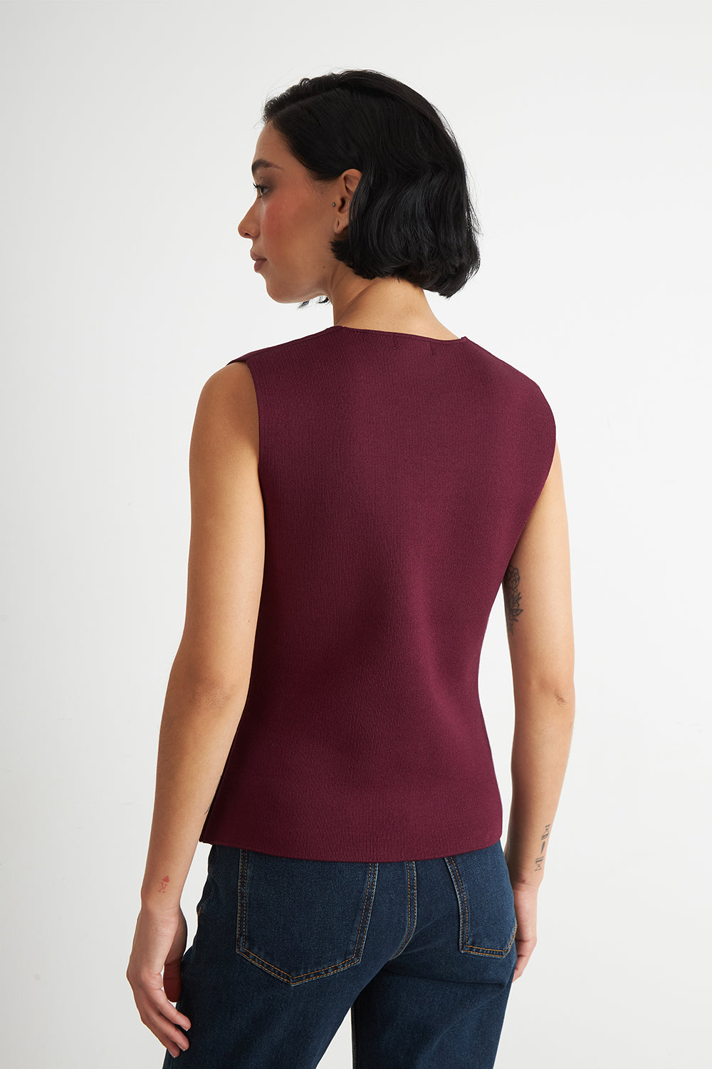 Gilet Largo con Botones Burdeo