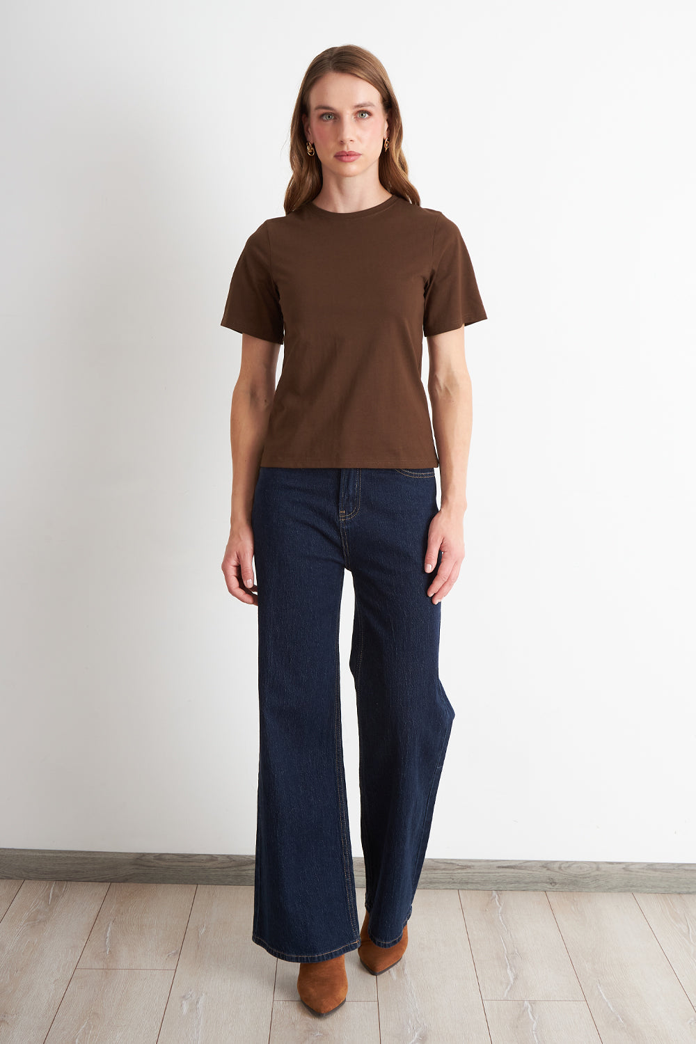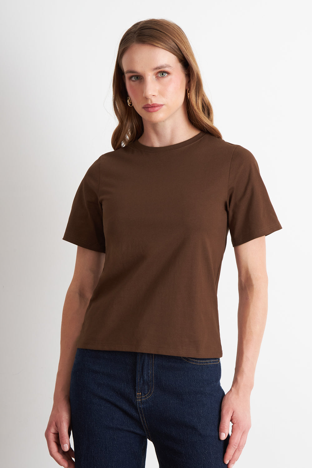 Polera Recta Manga Corta Café