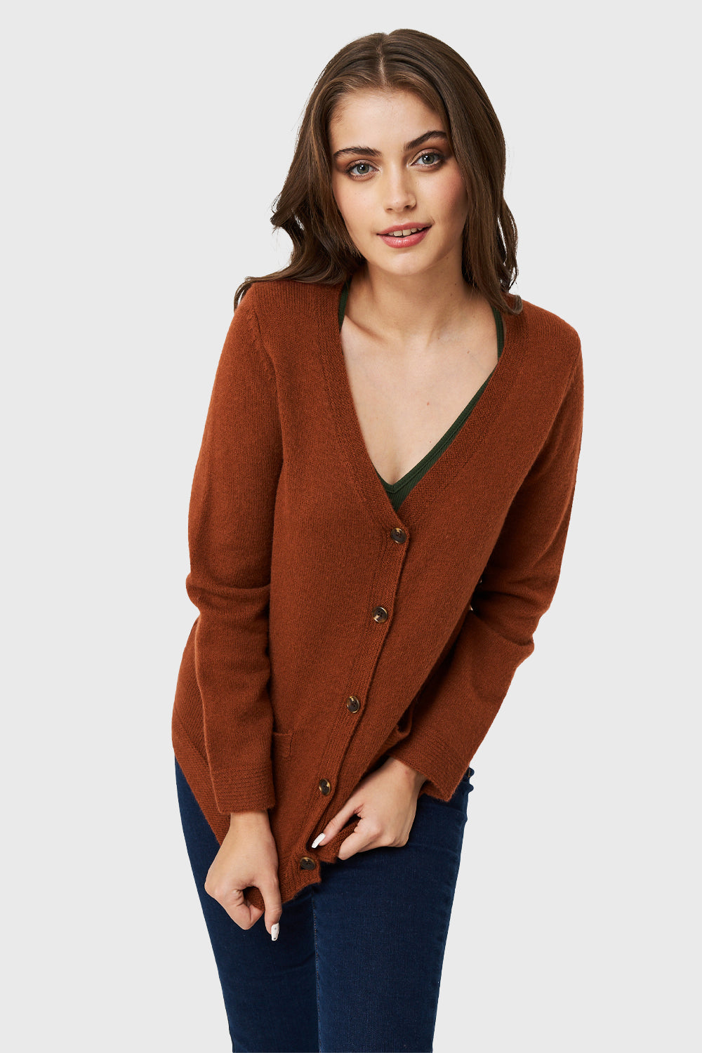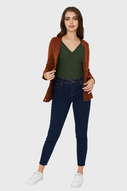 Cárdigan Abotonado Bolsillos Óxido