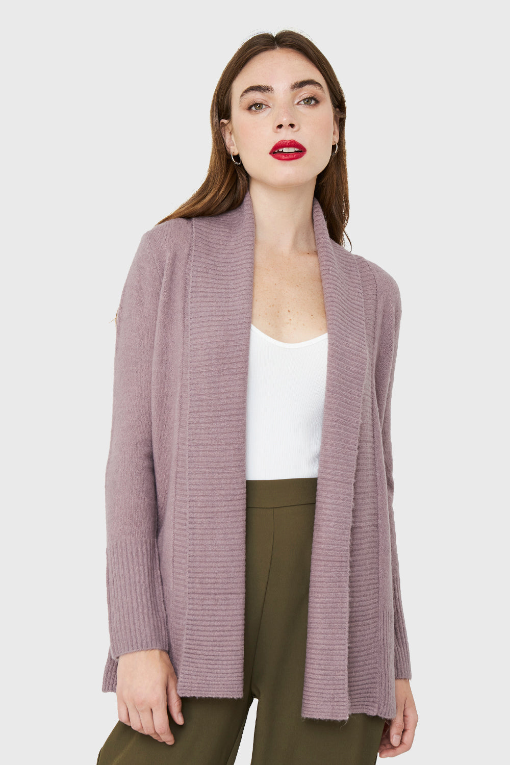 Características: Cárdigan con solapa y puños acanalados . Tejido liviano y suave.