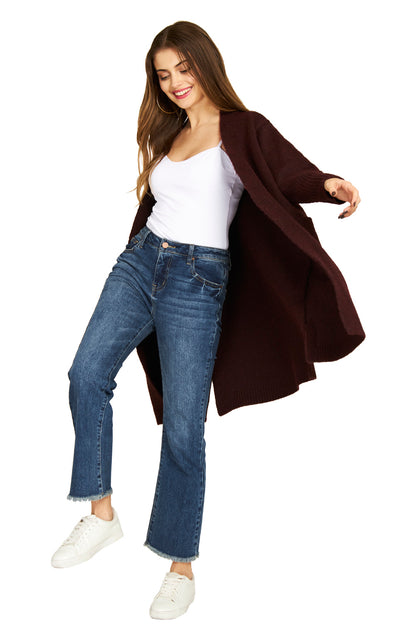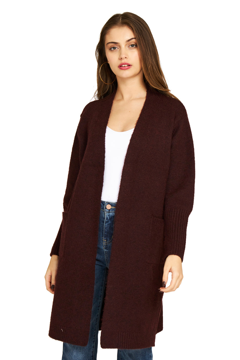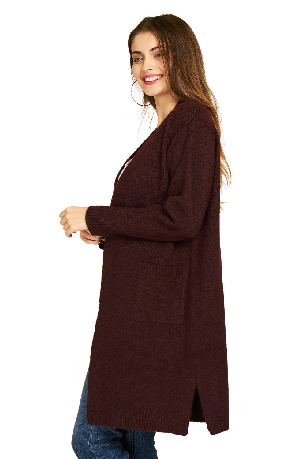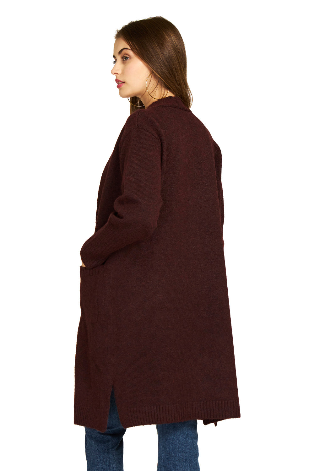Características: Cárdigan largo con bolsillos. Mini aberturas laterales en la parte baja. Pretina en puños.