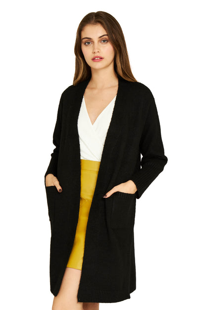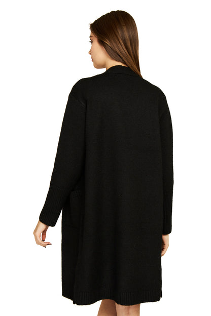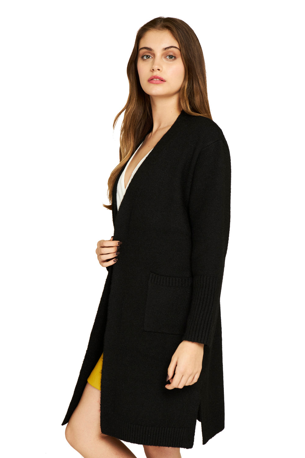 Características: Cárdigan largo con bolsillos. Mini aberturas laterales en la parte baja. Pretina en puños.