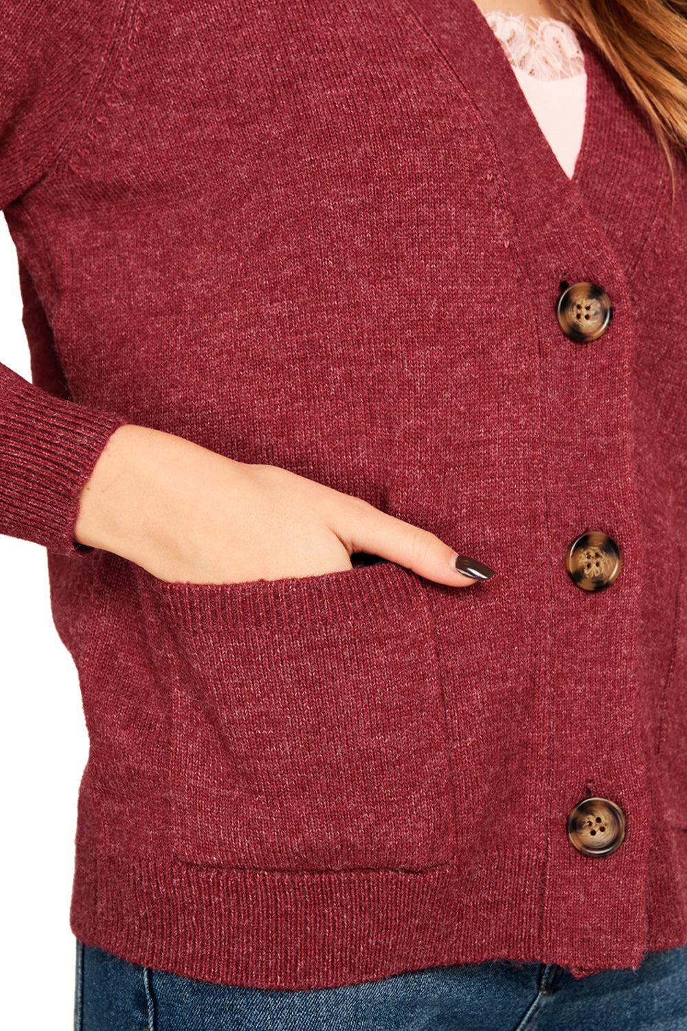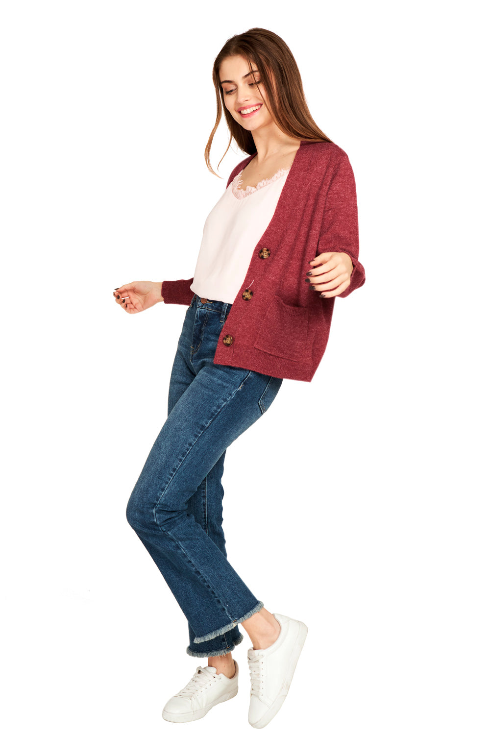 Características: Cárdigan cuello V con botones y bolsillos. Pretina en puños y Cadera.