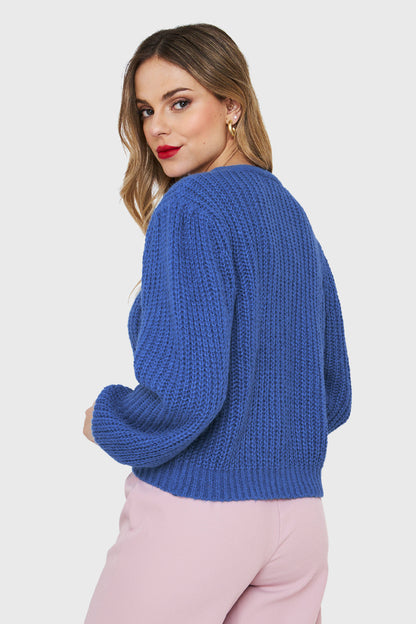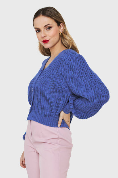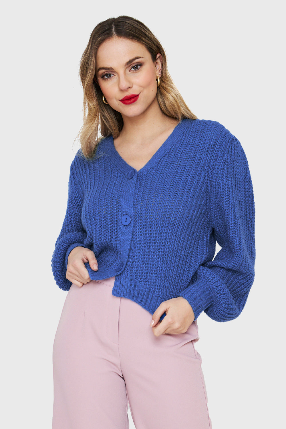 Características: Cárdigan corto tejido. Posee 3 botones funcionales. Manga globo.
