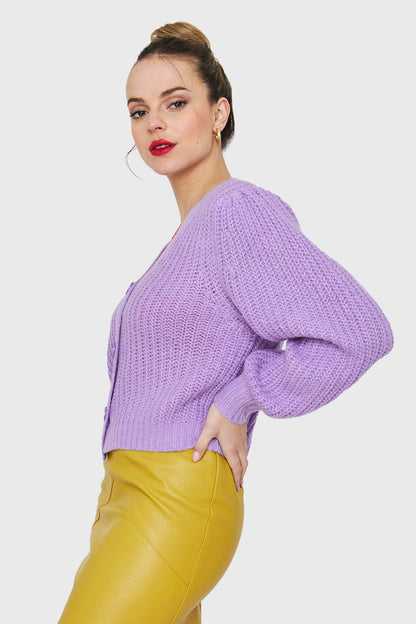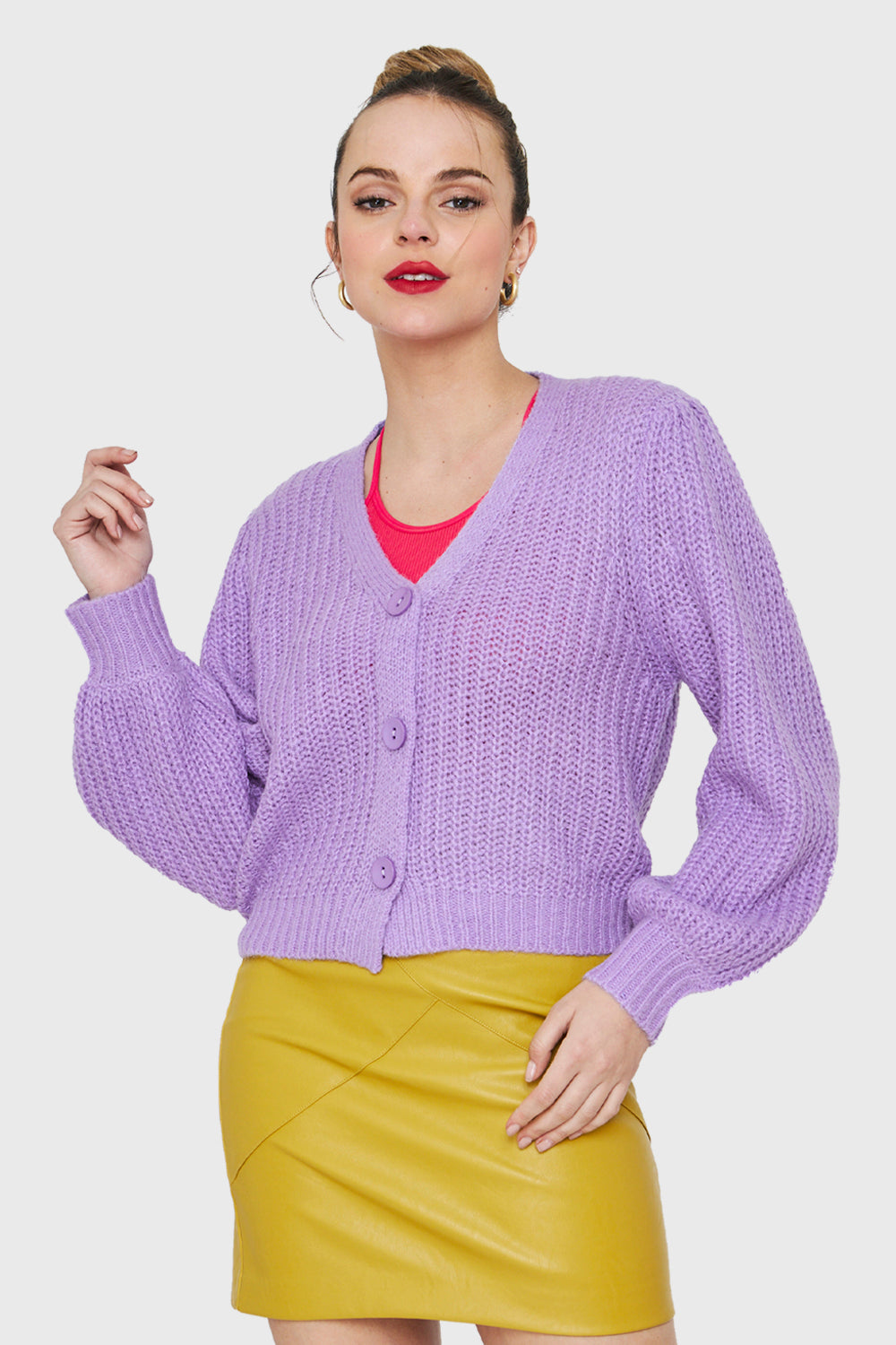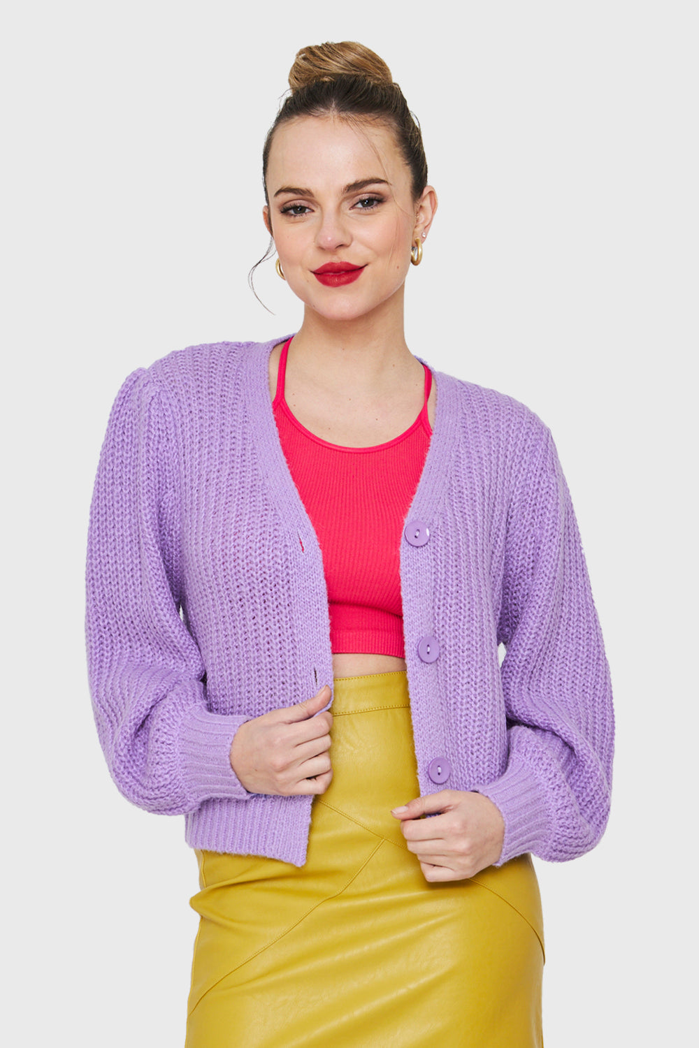 Características: Cárdigan corto tejido. Posee 3 botones funcionales. Manga globo.