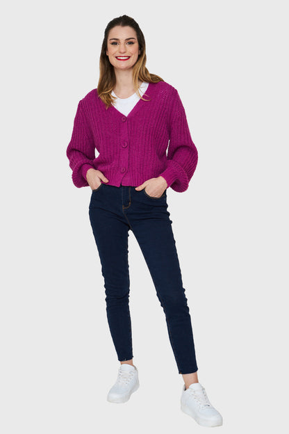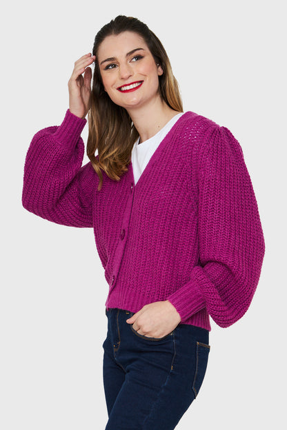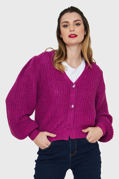 Cárdigan Corto Botones Magenta
