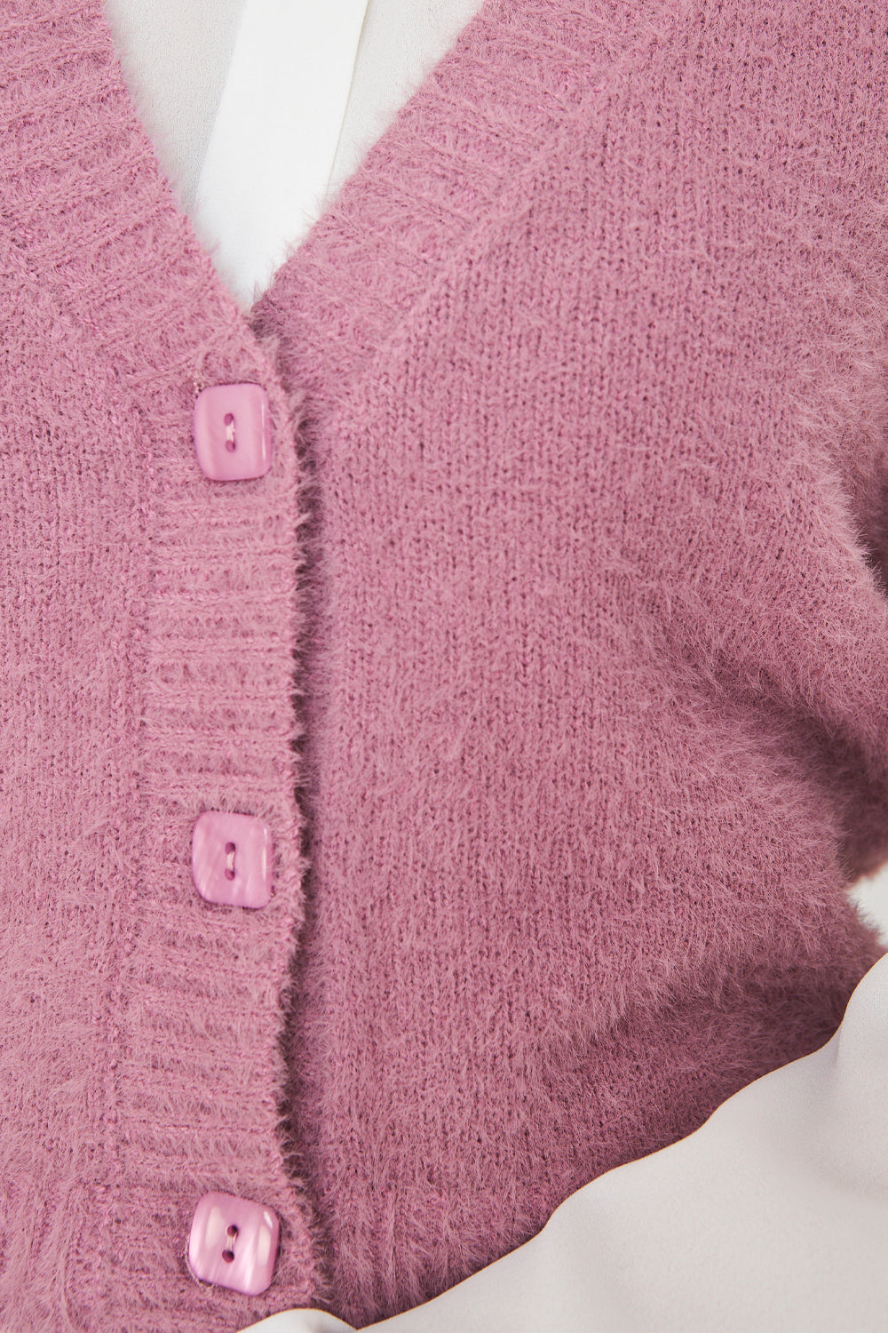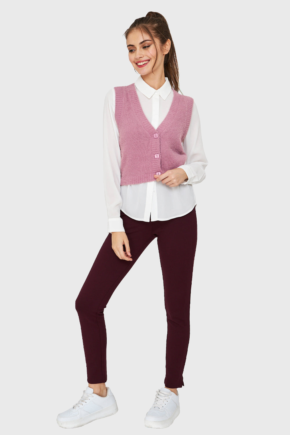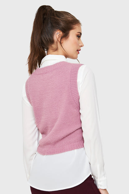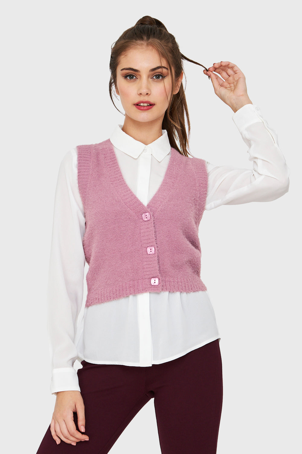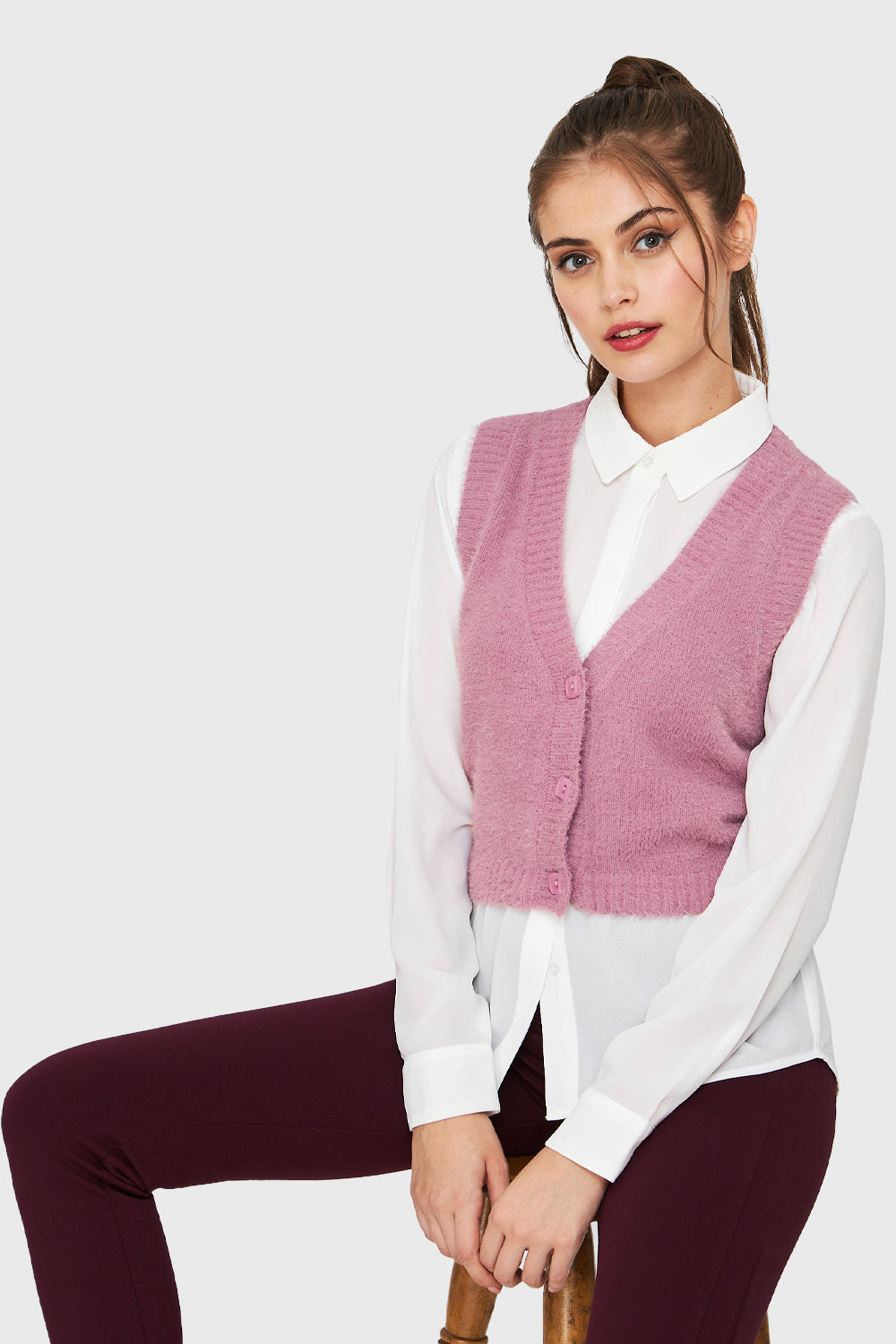 Características: Cárdigan corto sin mangas con botones frontales de ajuste. Textura suave y peludito.