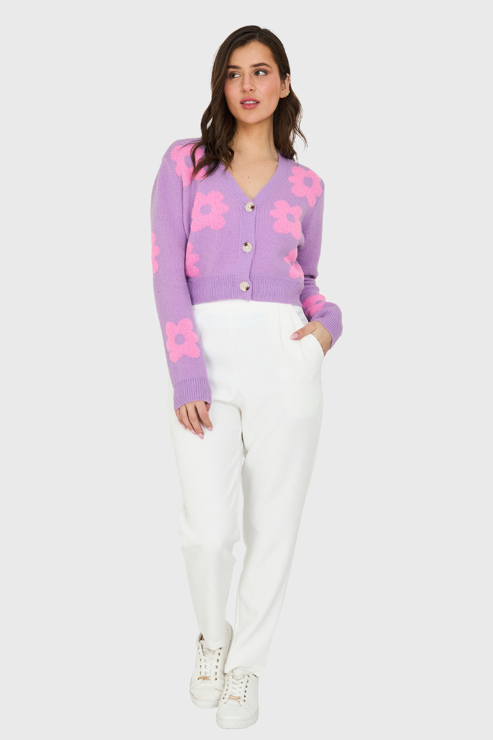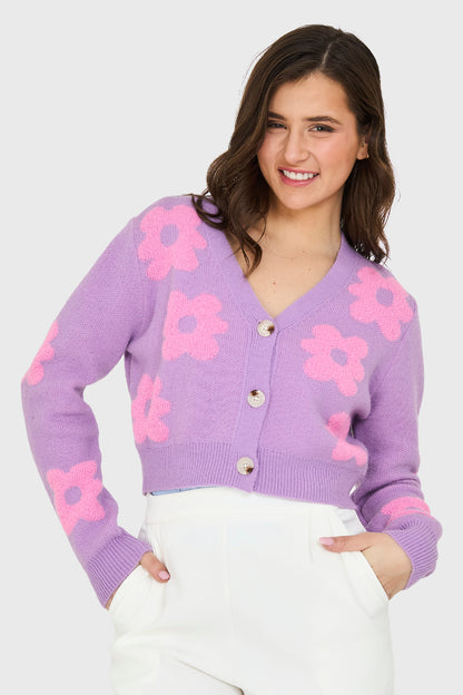Cárdigan Crop Flores Lila