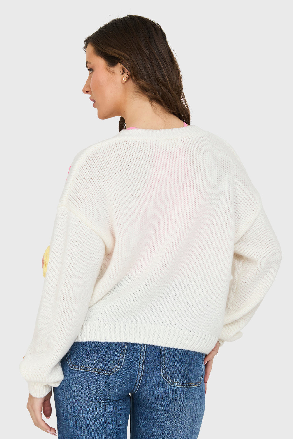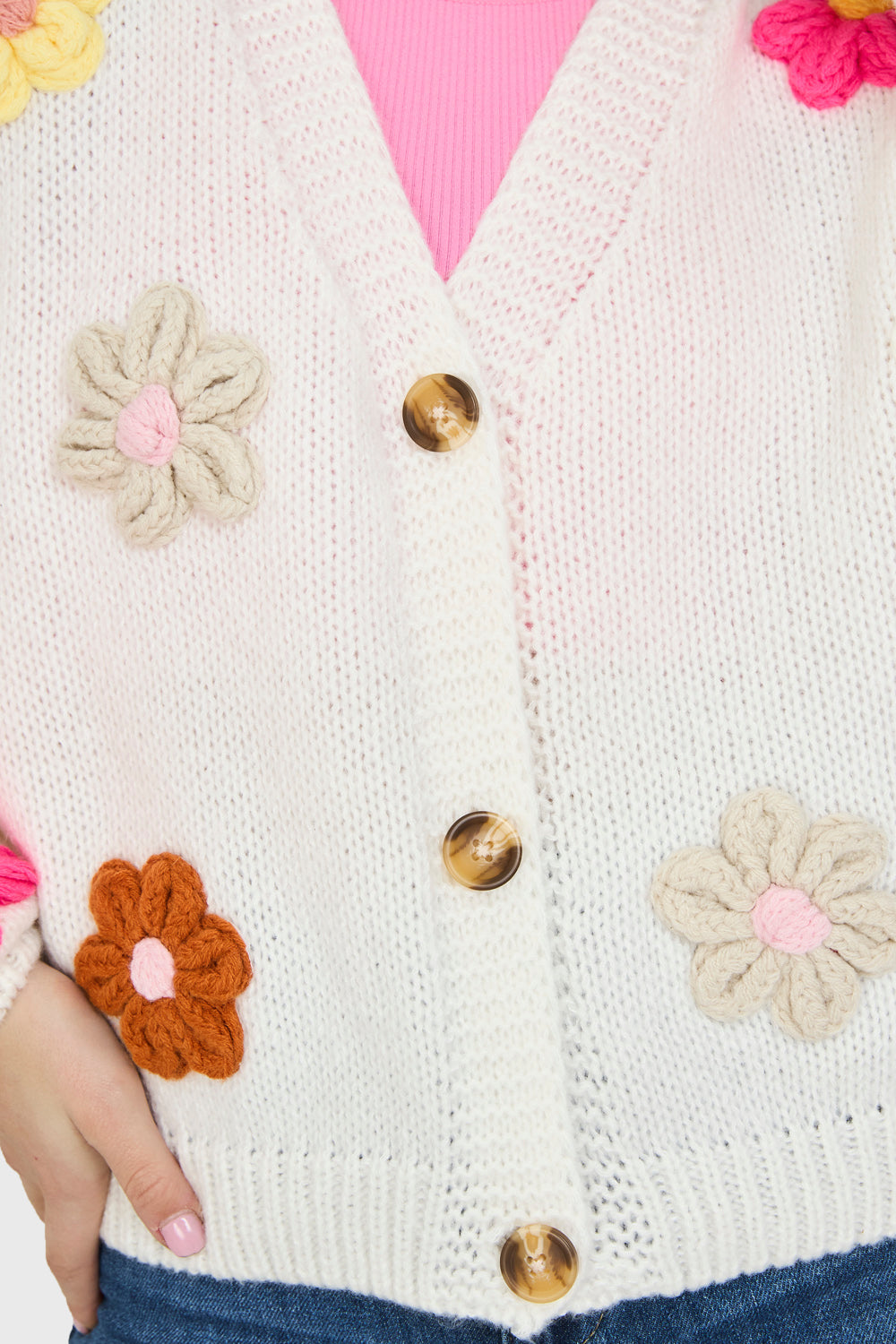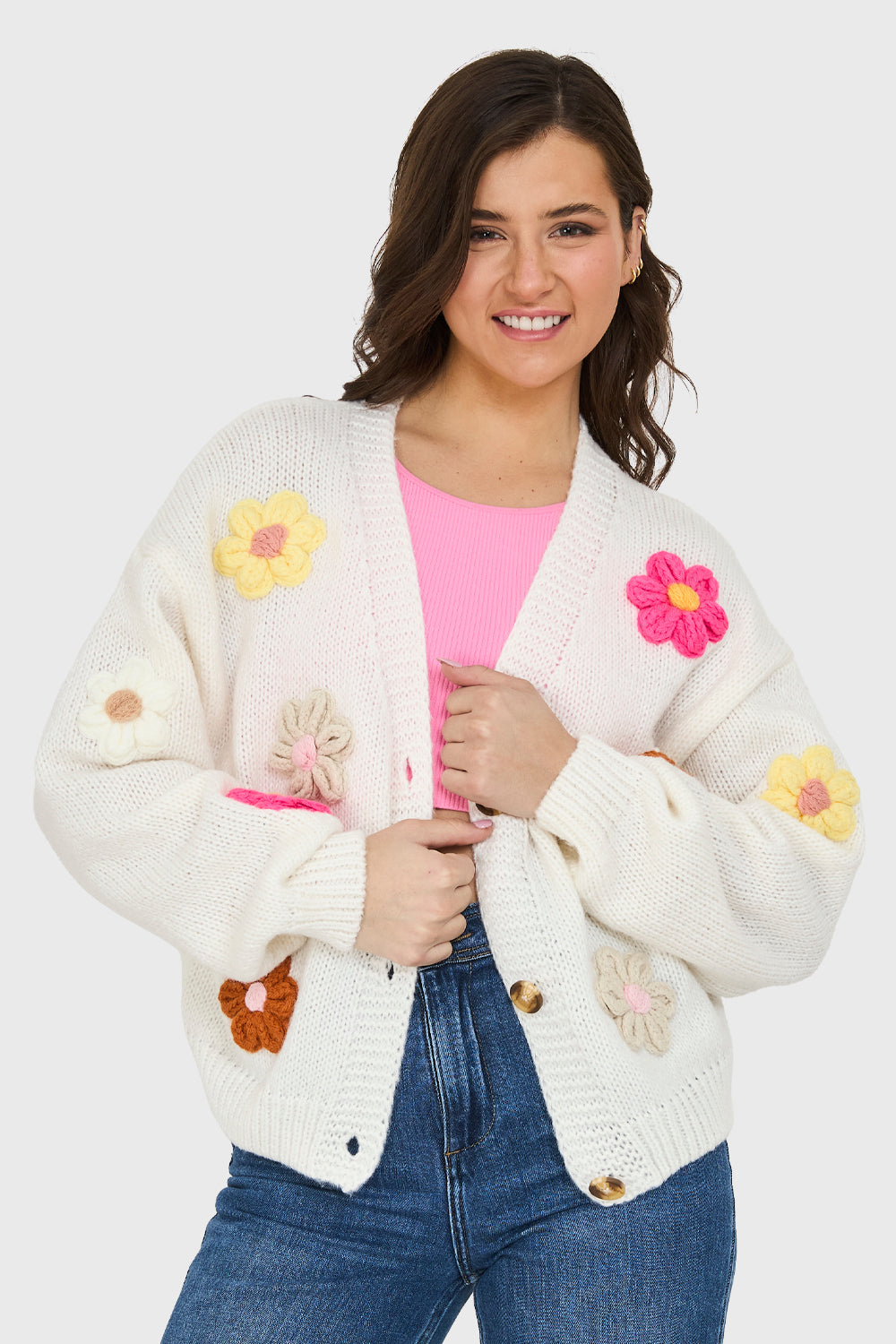 Características: Cárdigan manga larga con flores de colores 3D. Botones de ajuste en la parte frontal.
