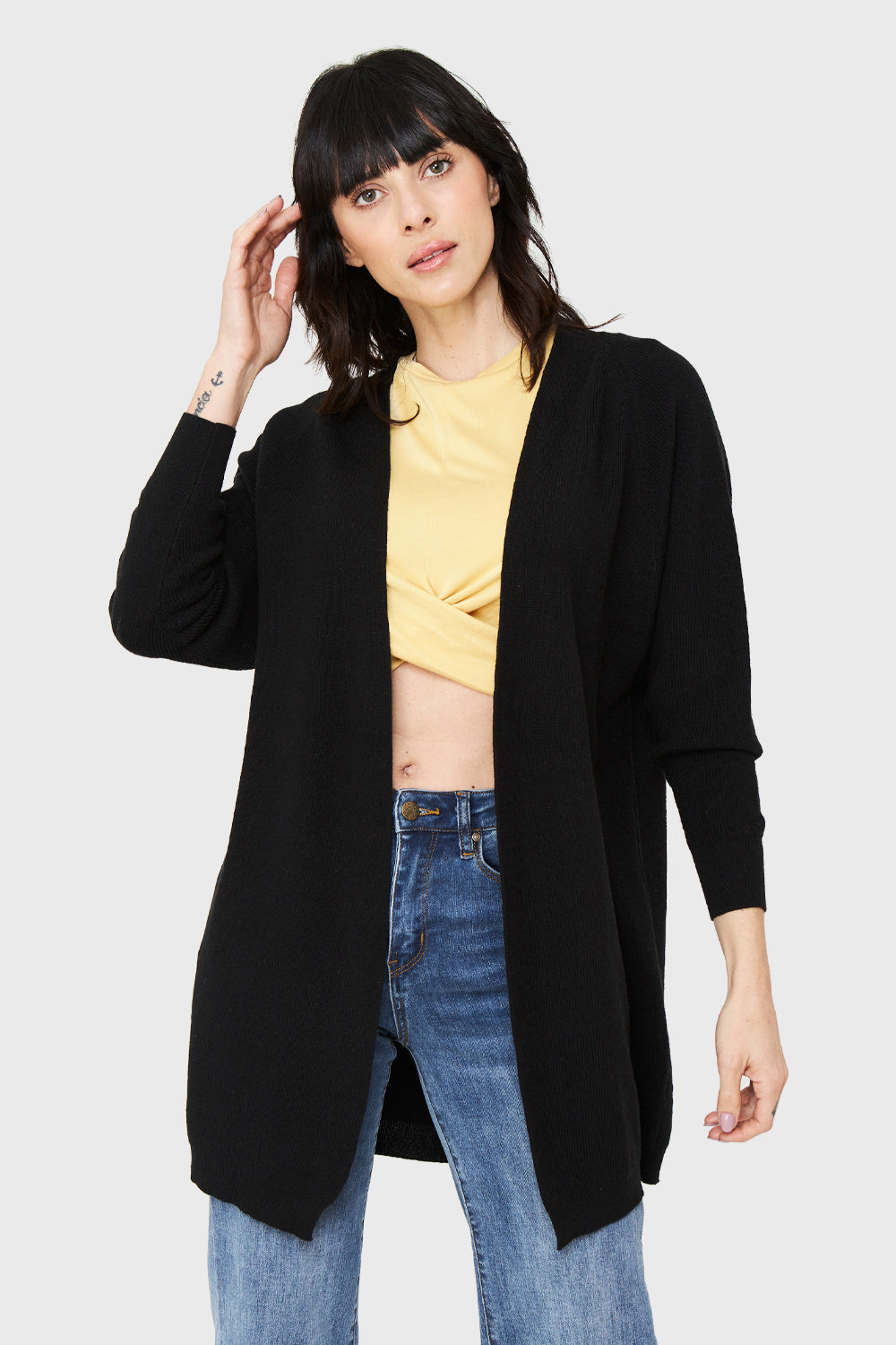 Características: Cárdigan básico. Pretina en puños y en la parte inferior. Manga kimono.