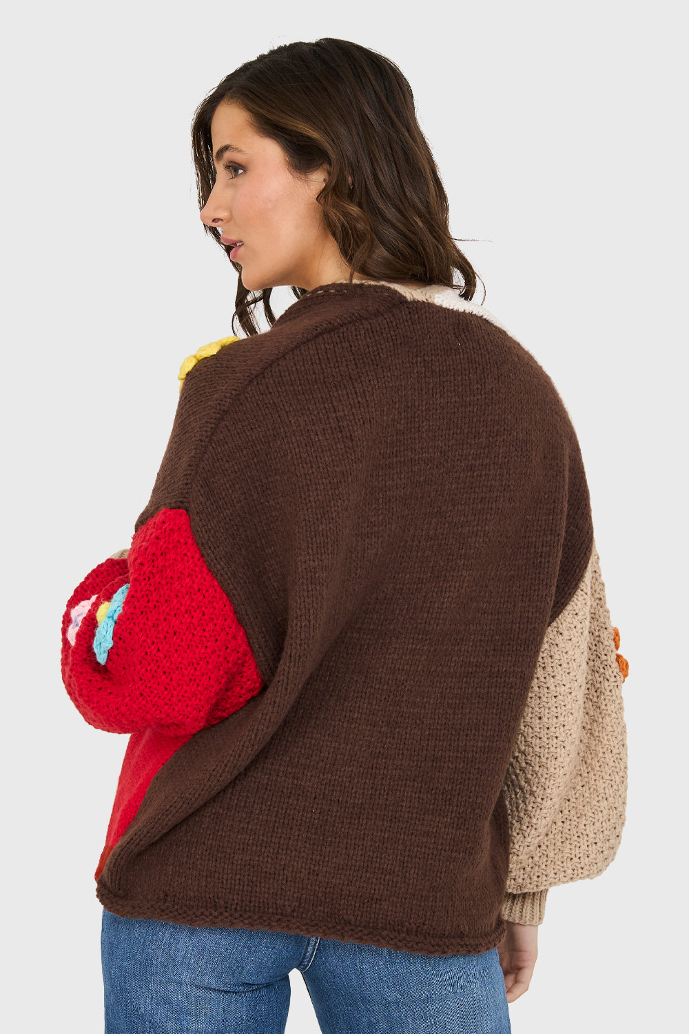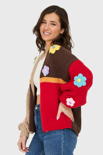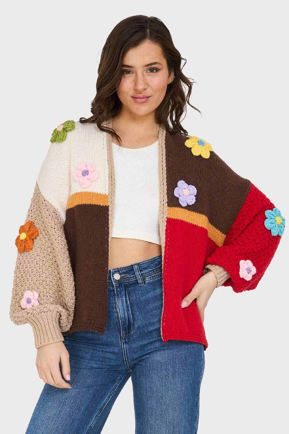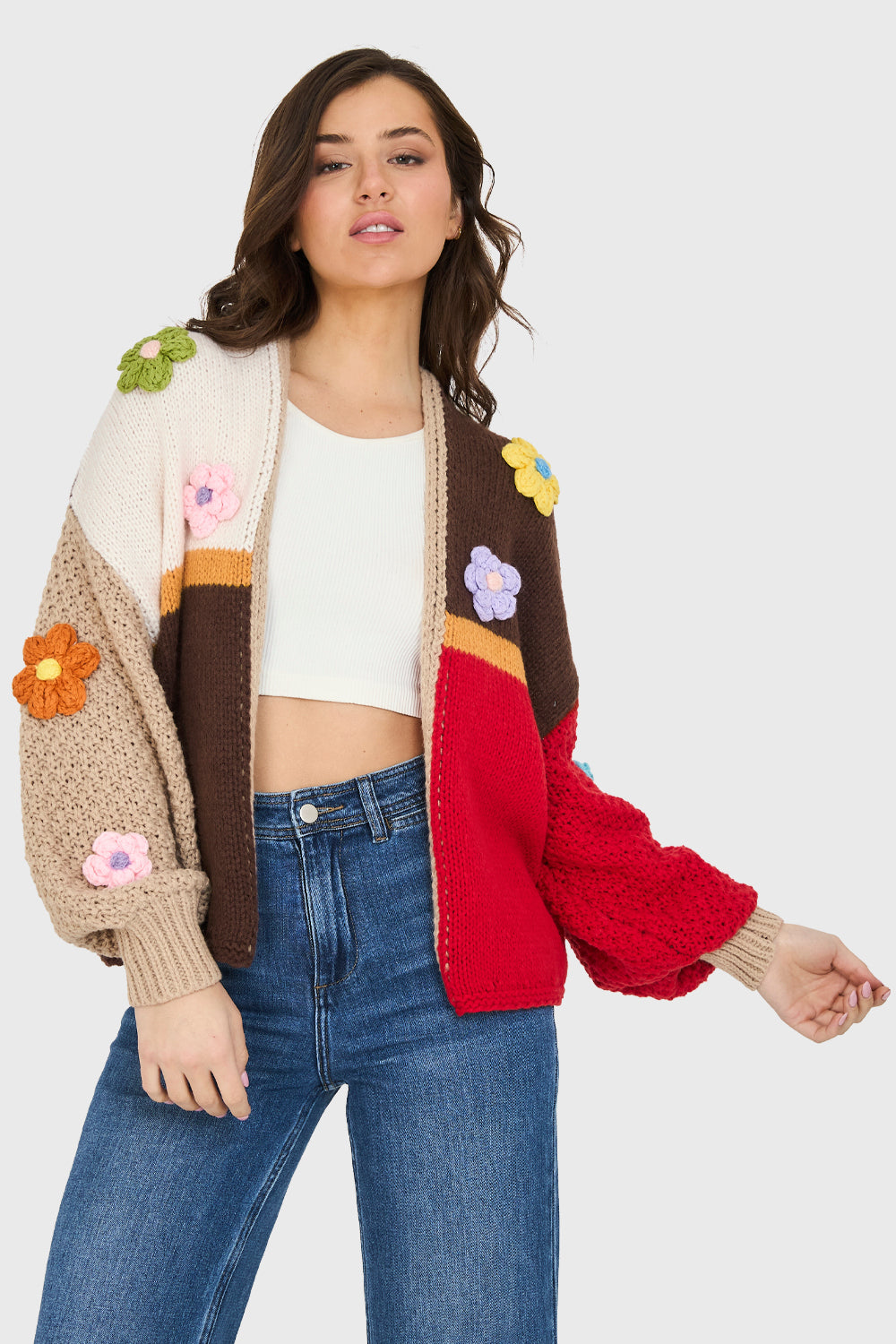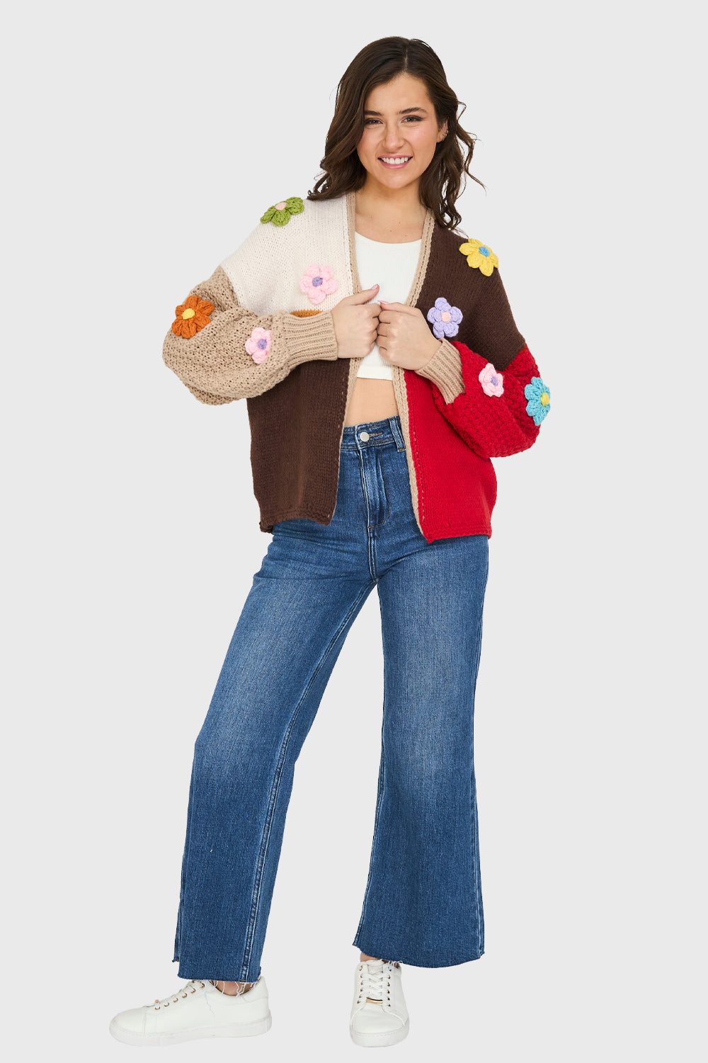 Características: Cárdigan con manga larga y flores de colores 3D.