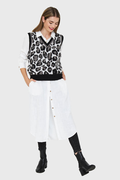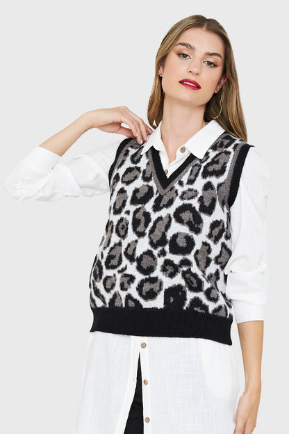 Características: Chaleco sin mangas, cuello escote en V. Print de leopardo.