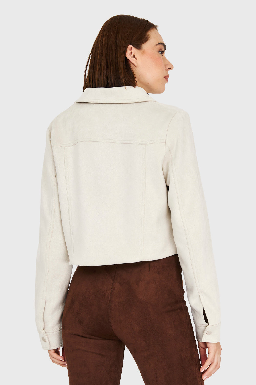 Chaqueta Corta Tipo Gamuza Blanco Invierno