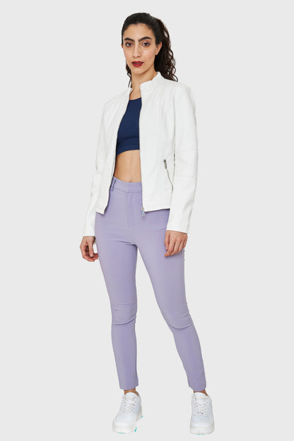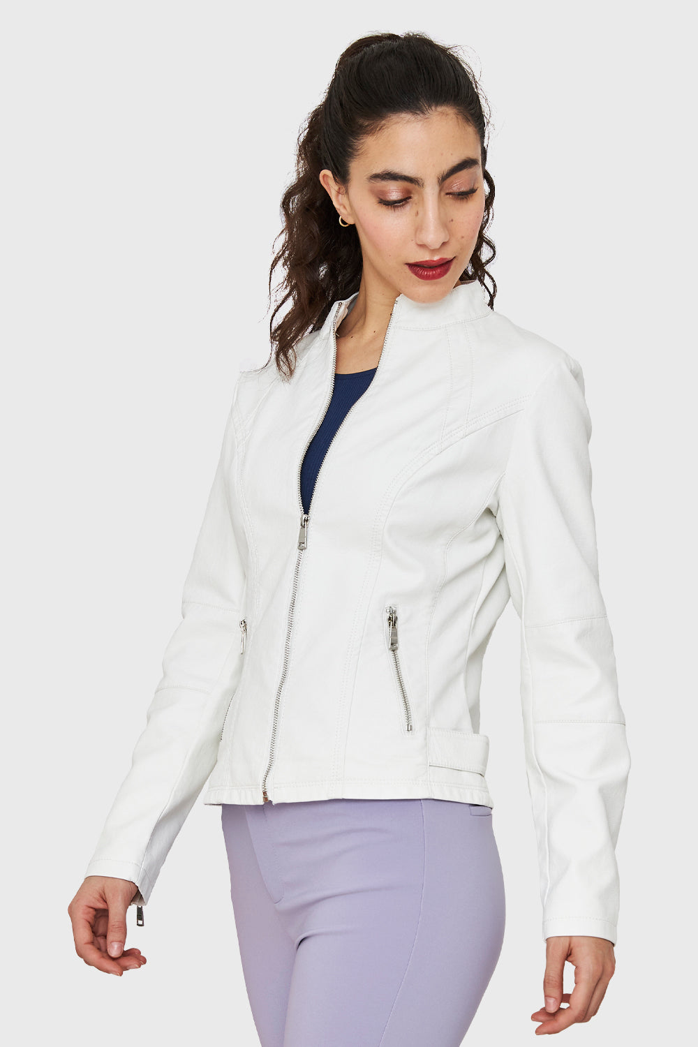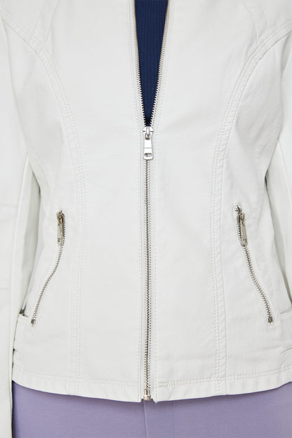 Chaqueta Cuello Mao Ecocuero Blanco