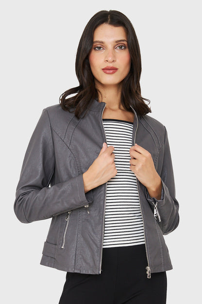Chaqueta Mao Ecocuero Gris