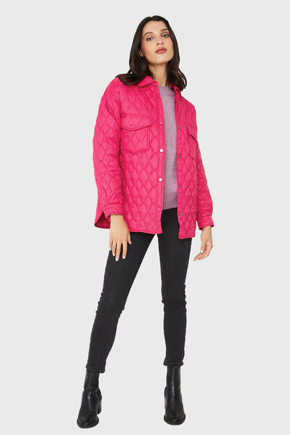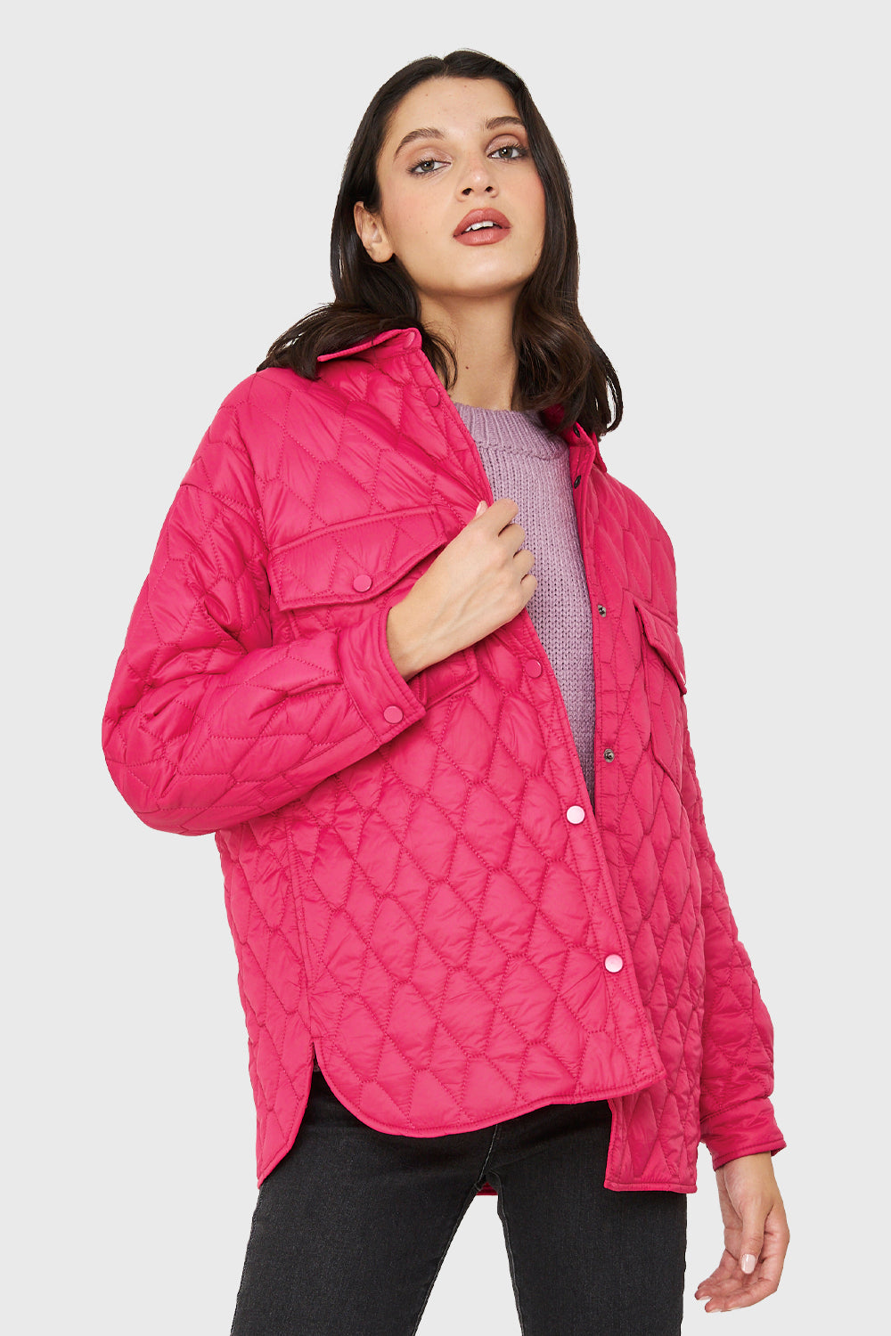 Características: Chaqueta quilt tipo camisera material parka. Broche en puños y bolsillos frontales a nivel busto funcionales.