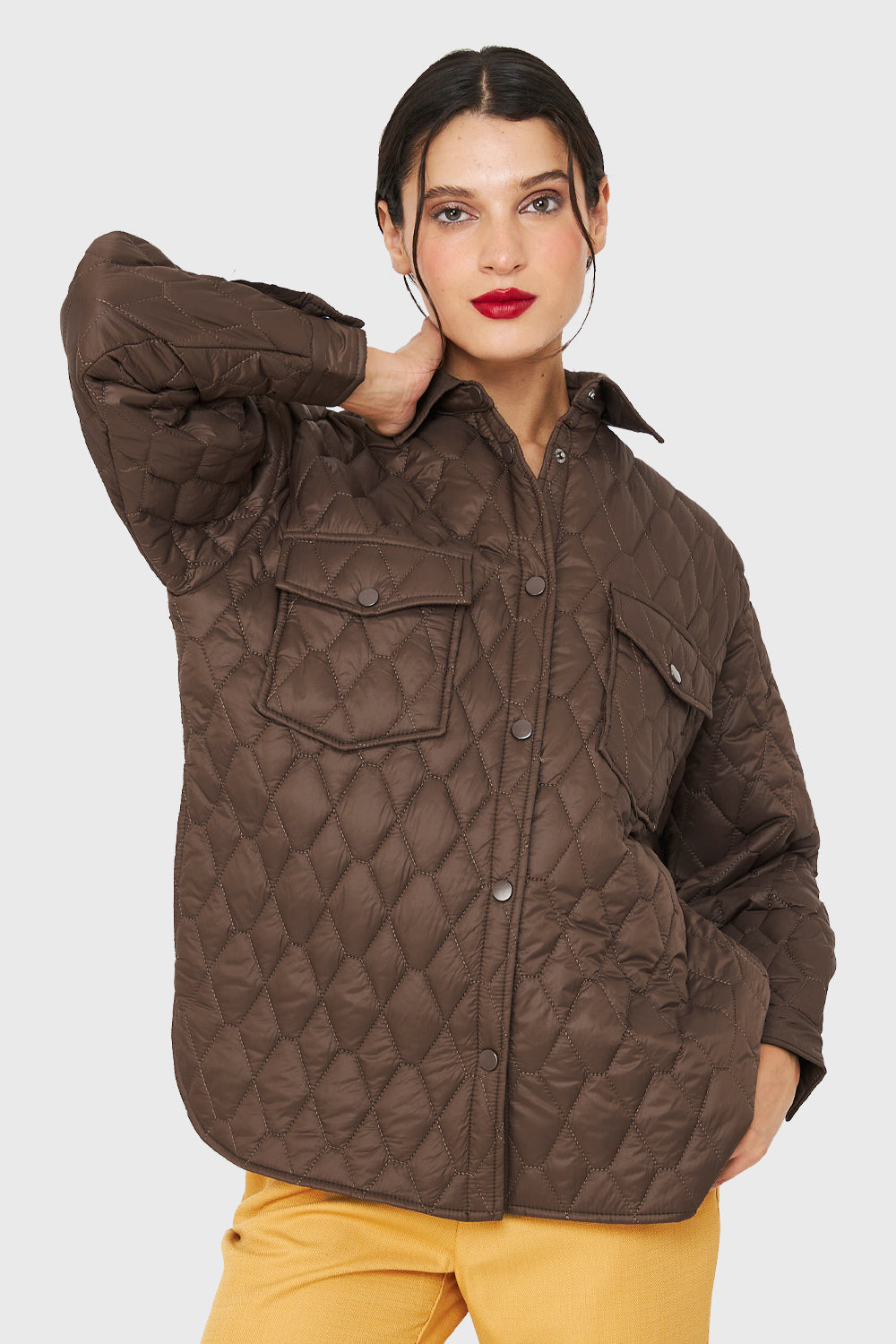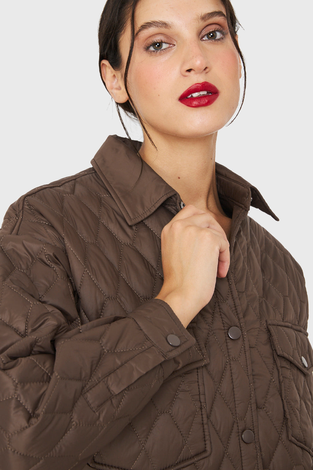 Características: Chaqueta quilt tipo camisera material parka. Broche en puños y bolsillos frontales a nivel busto funcionales.