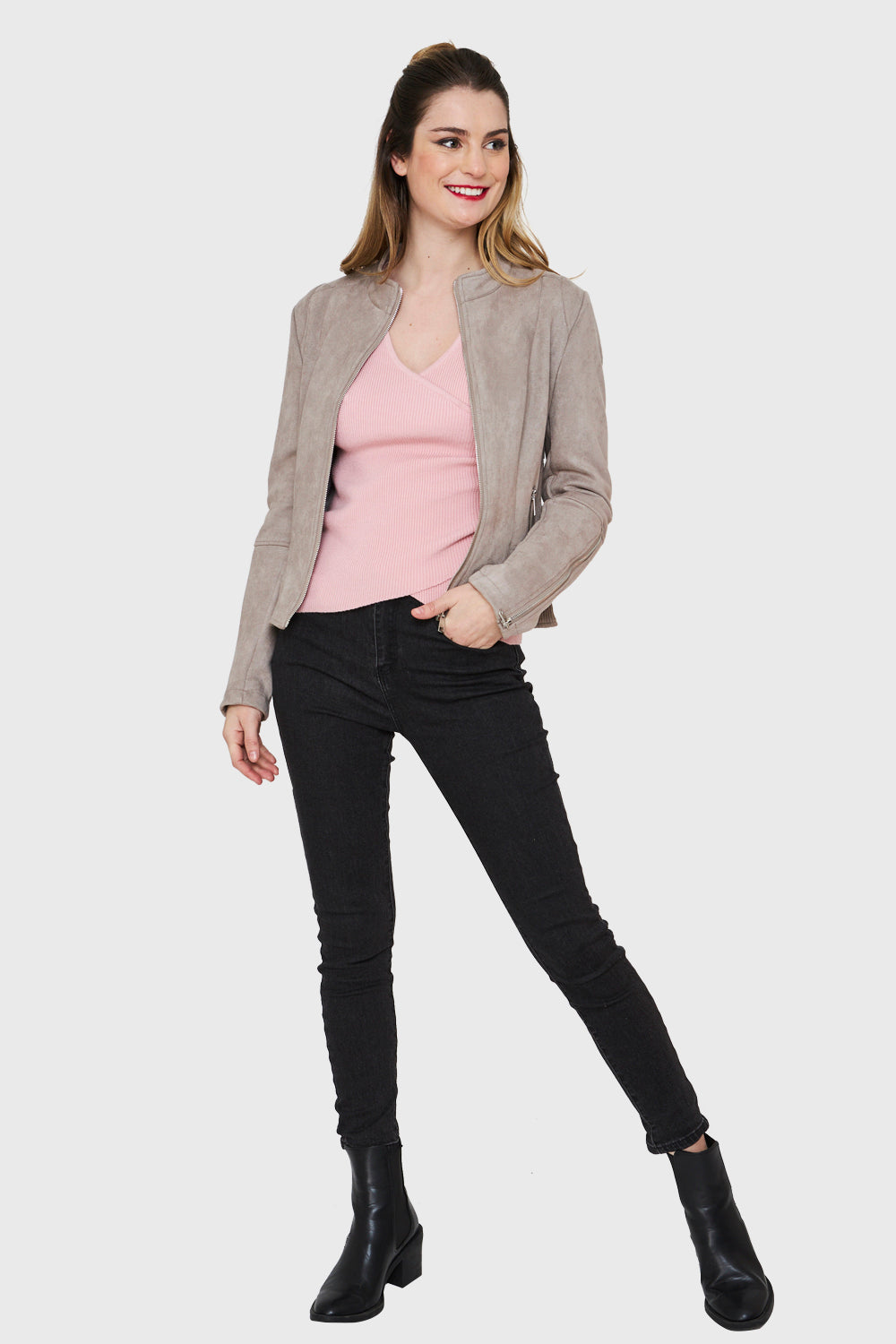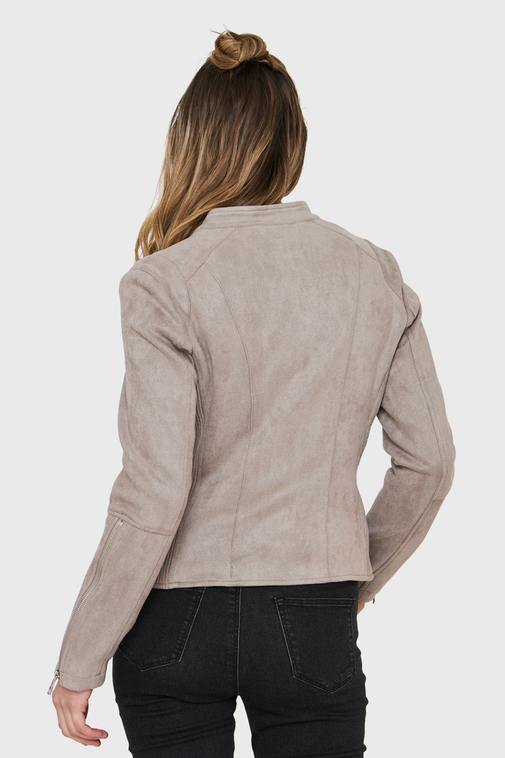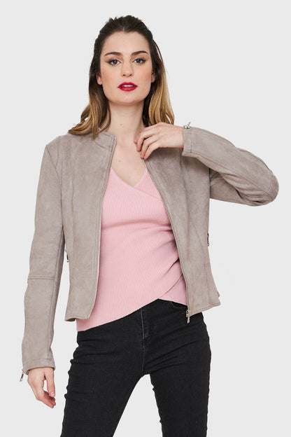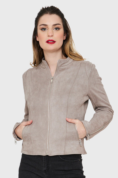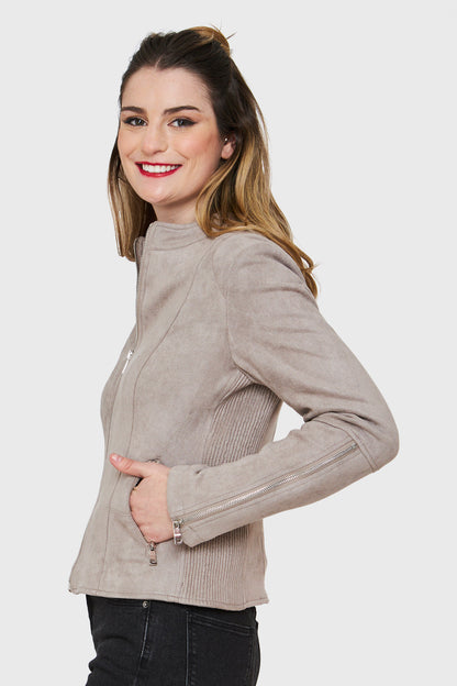 Chaqueta Tipo Gamuza Cuello Mao Gris