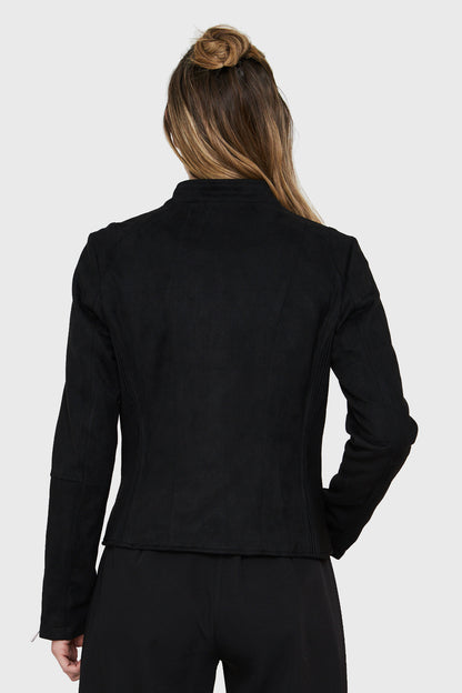 Chaqueta Tipo Gamuza Cuello Mao Negro