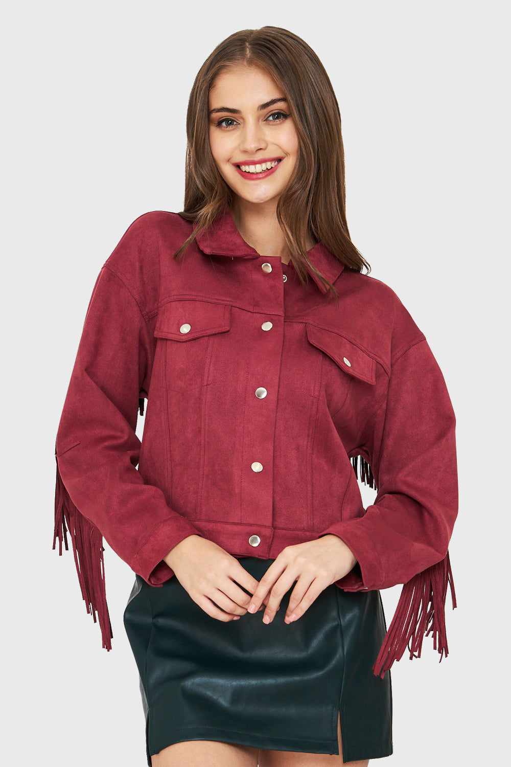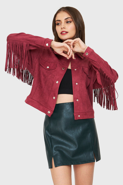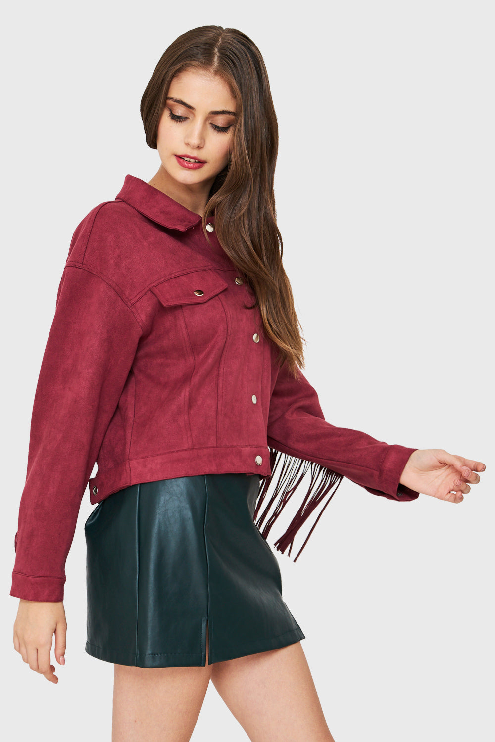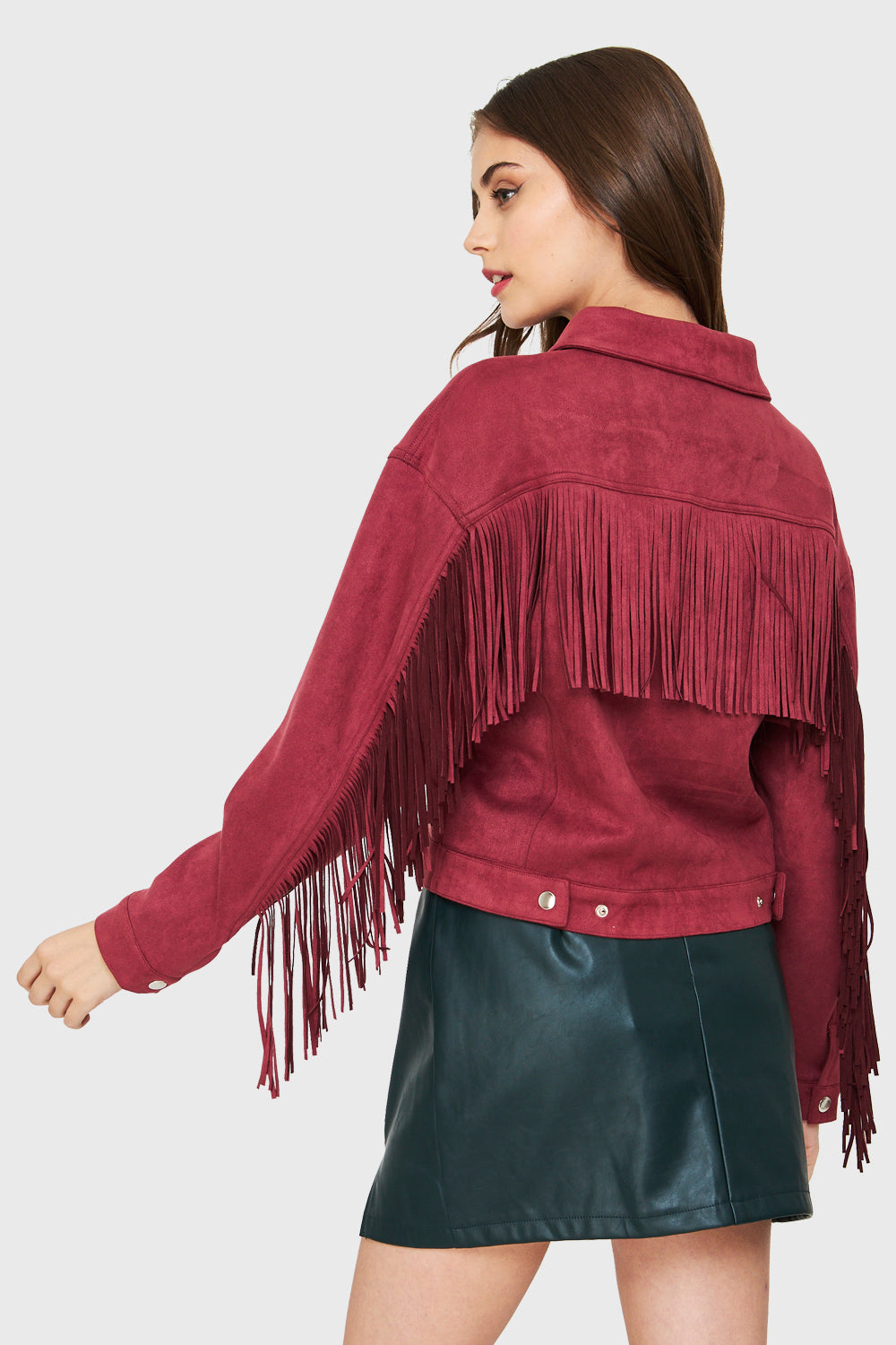 Chaqueta Tipo Gamuza Flecos Burdeos