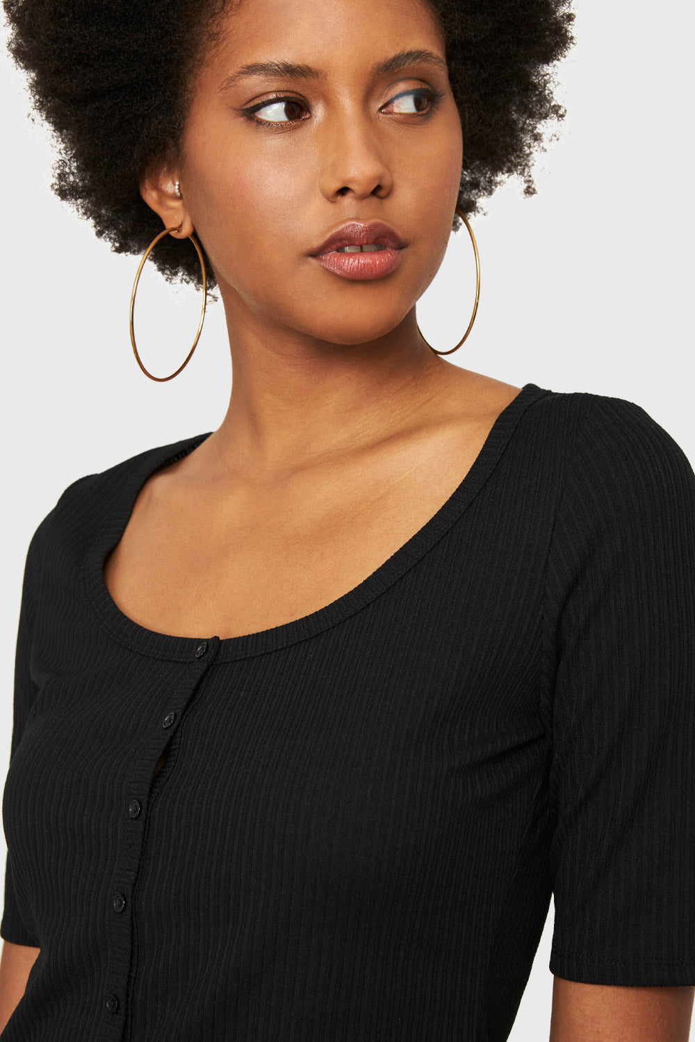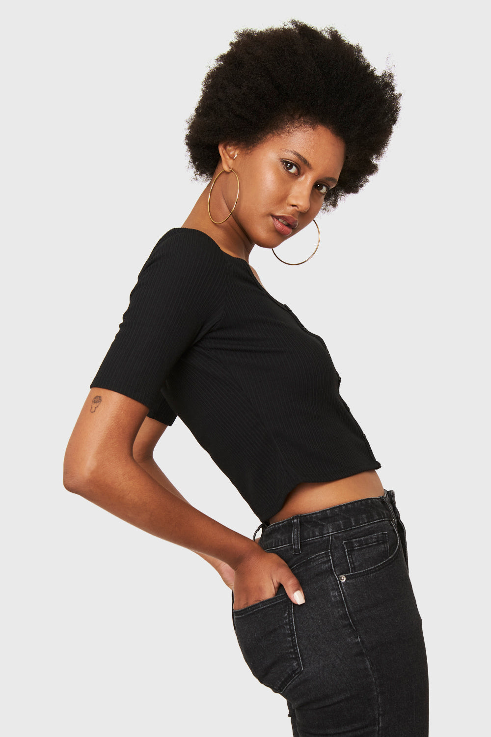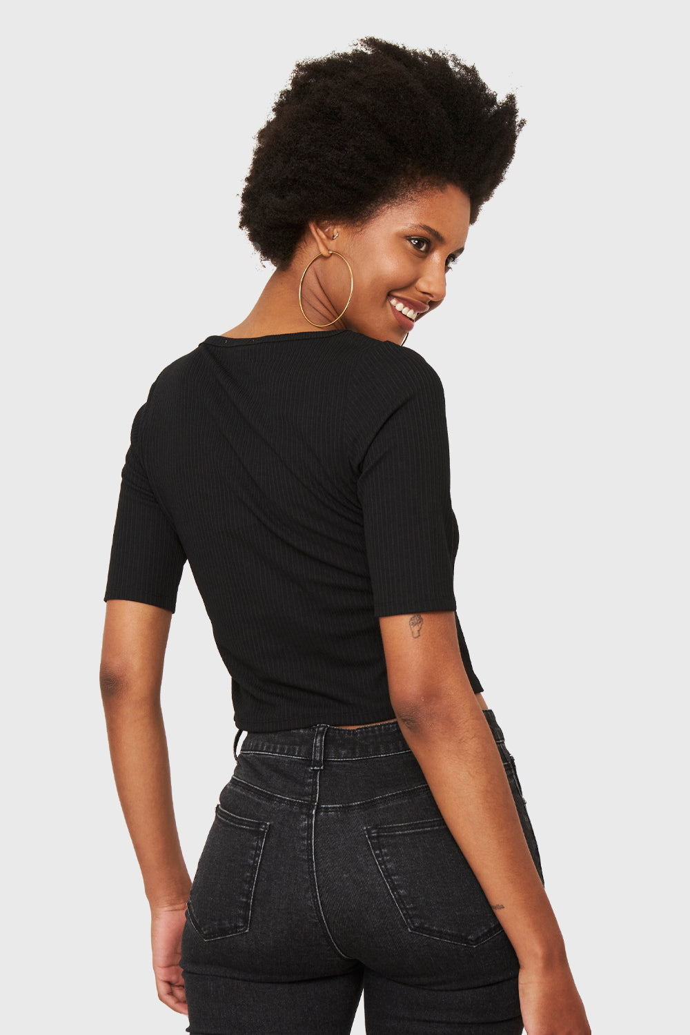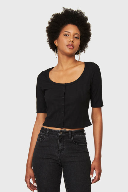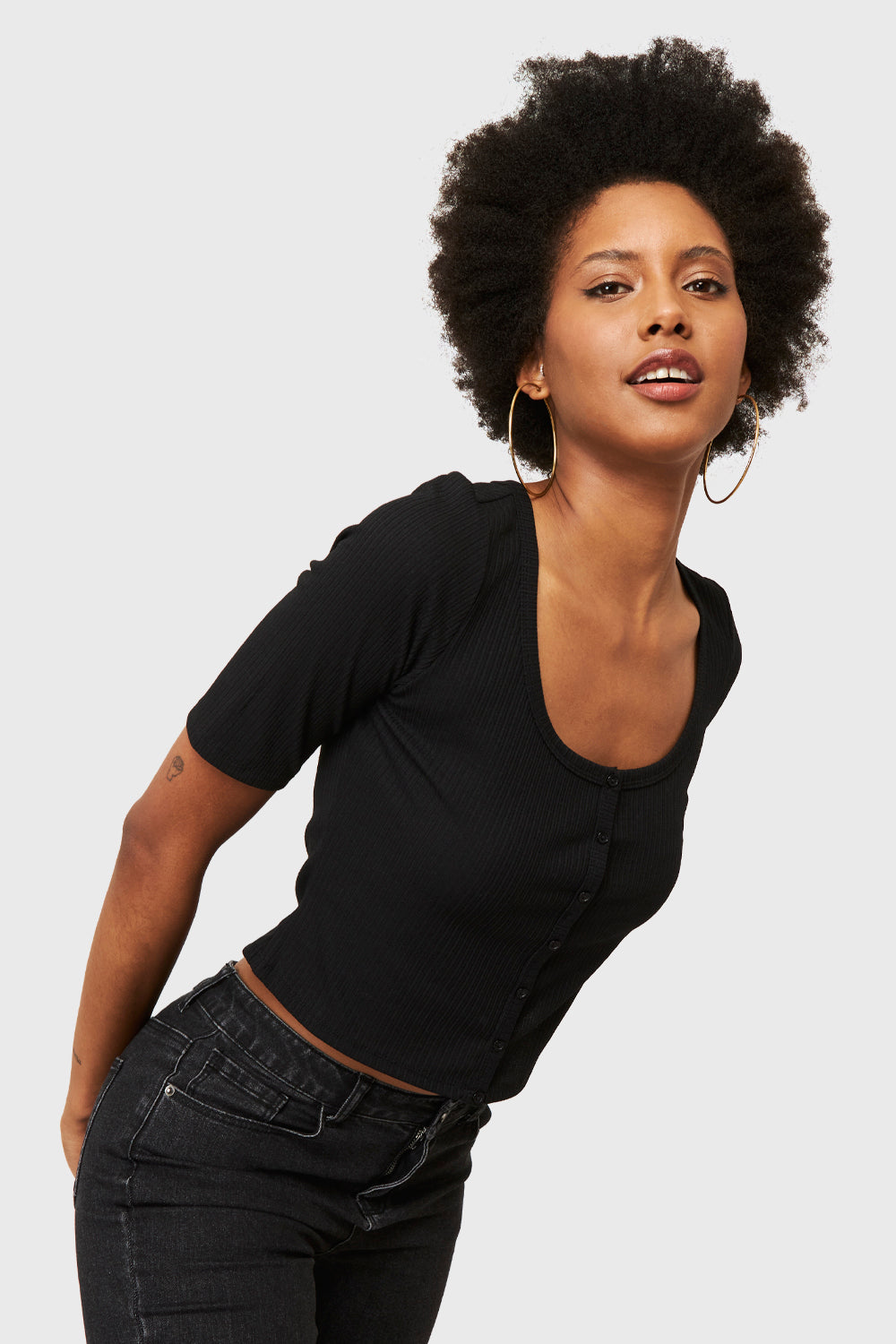 Características: Crop top con botones decorativos. Manga corta. Cuello redondo.
