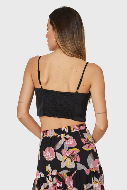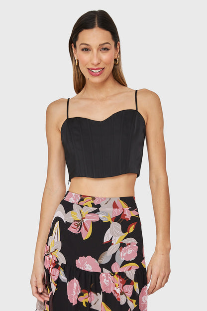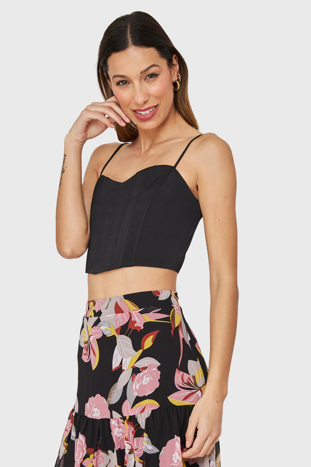 Características: Top corsetero con varillas de plastico en el frente y espalda elasticada. Cierre invisible al costado. Pabilos ajustables. Posee forro.
