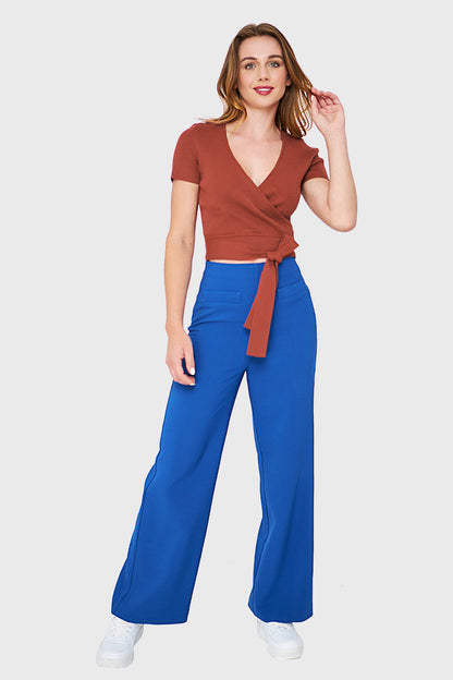 Características: Crop top manga corta. Escote en V cruzado. Lazo decorativo frontal. Tejido acanalado y elasticado.
