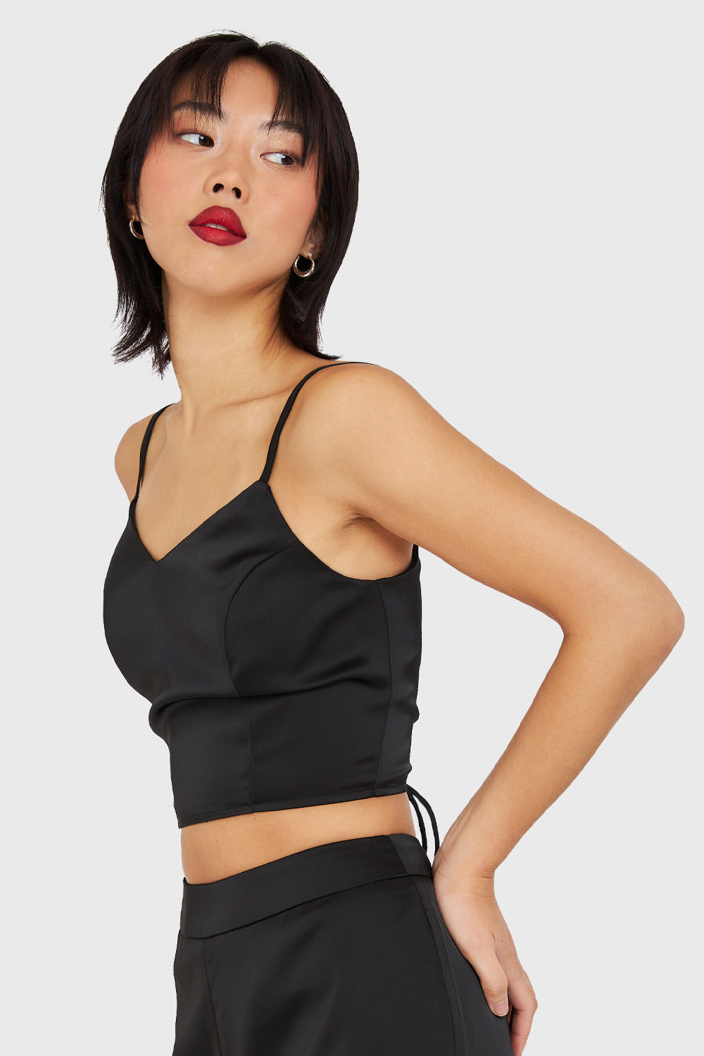 Características: Crop top tipo satín con lazos tipo corsé de ajuste en la espalda.