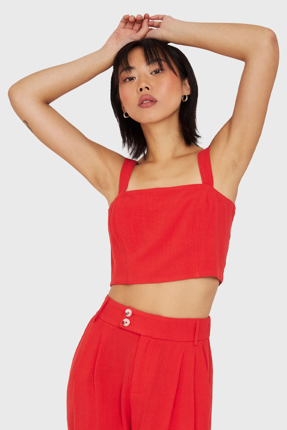 Características: Crop top con lino de escote cuadrado. Posee cierre invisible al costado.