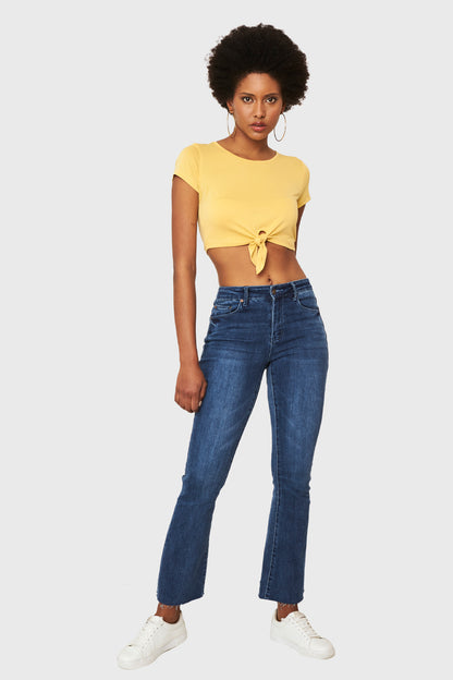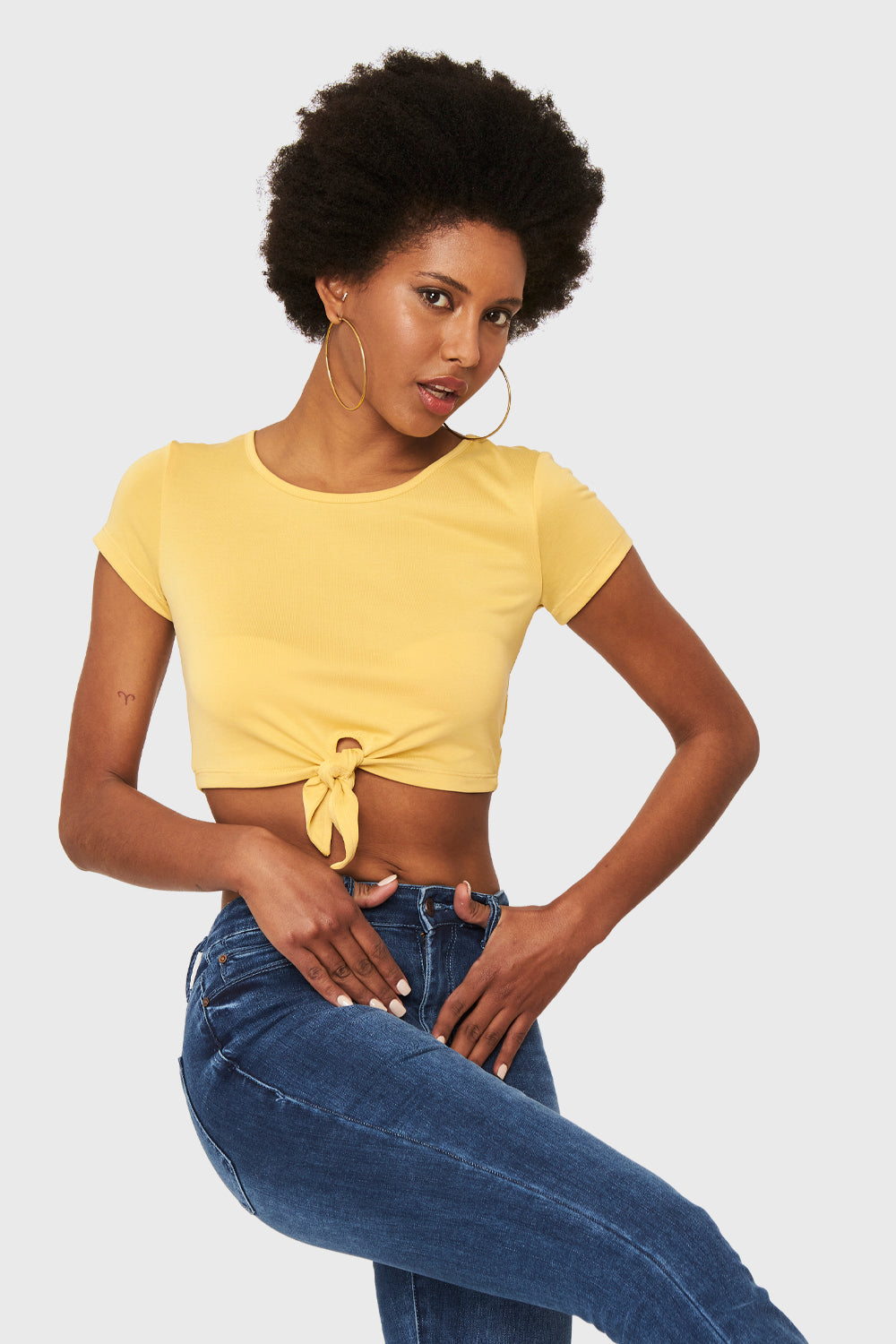 Características: Crop top básico con nudo frontal decorativo. Manga corta. Cuello redondo.