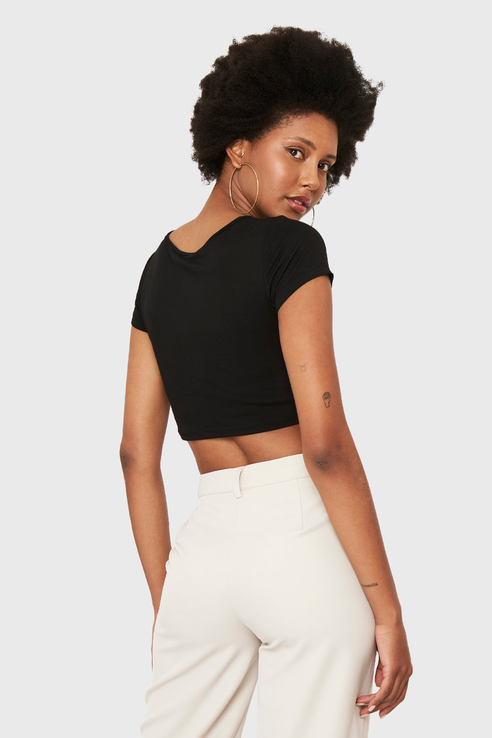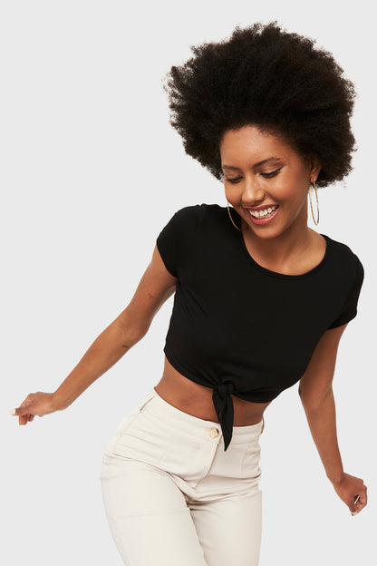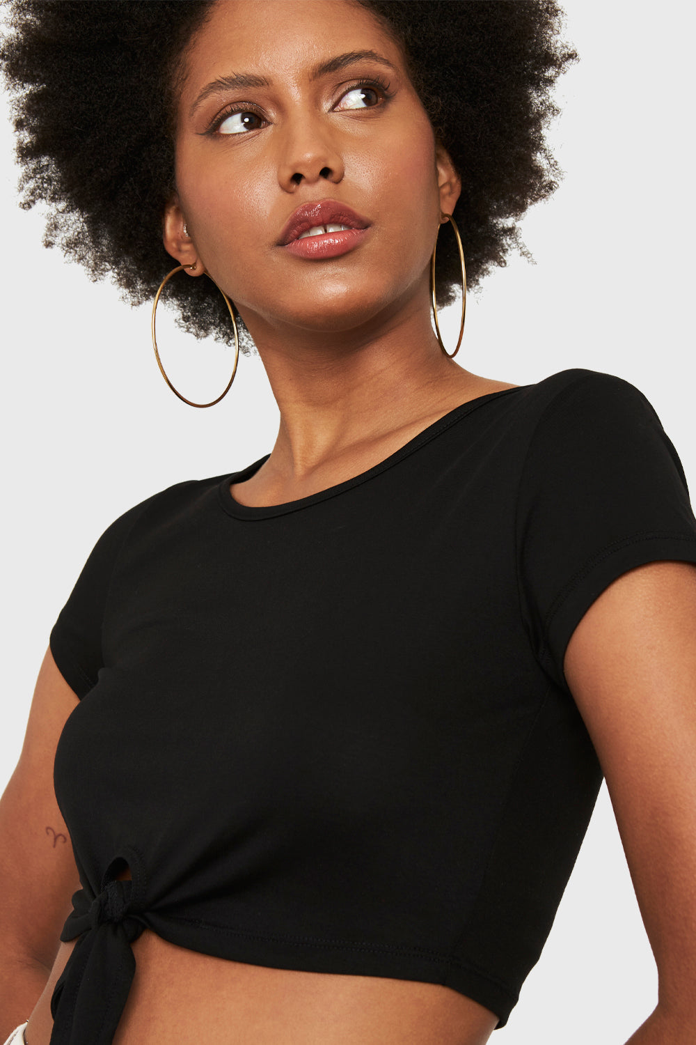 Características: Crop top básico con nudo frontal decorativo. Manga corta. Cuello redondo.