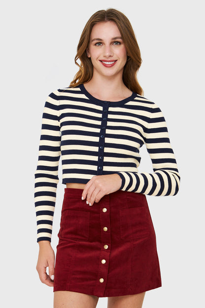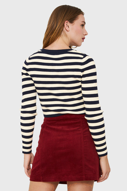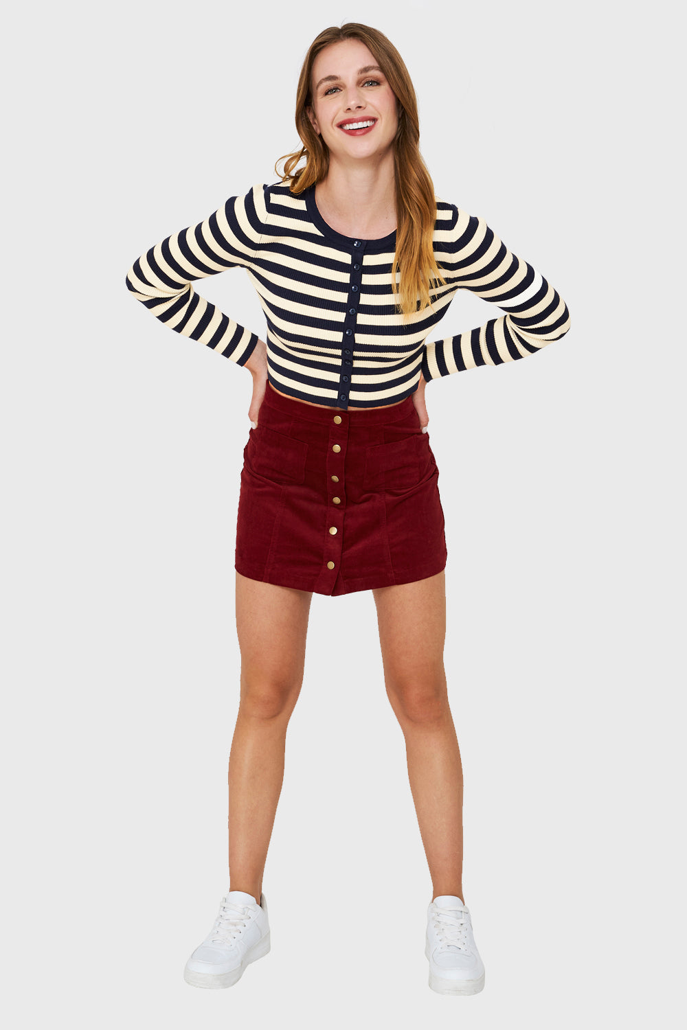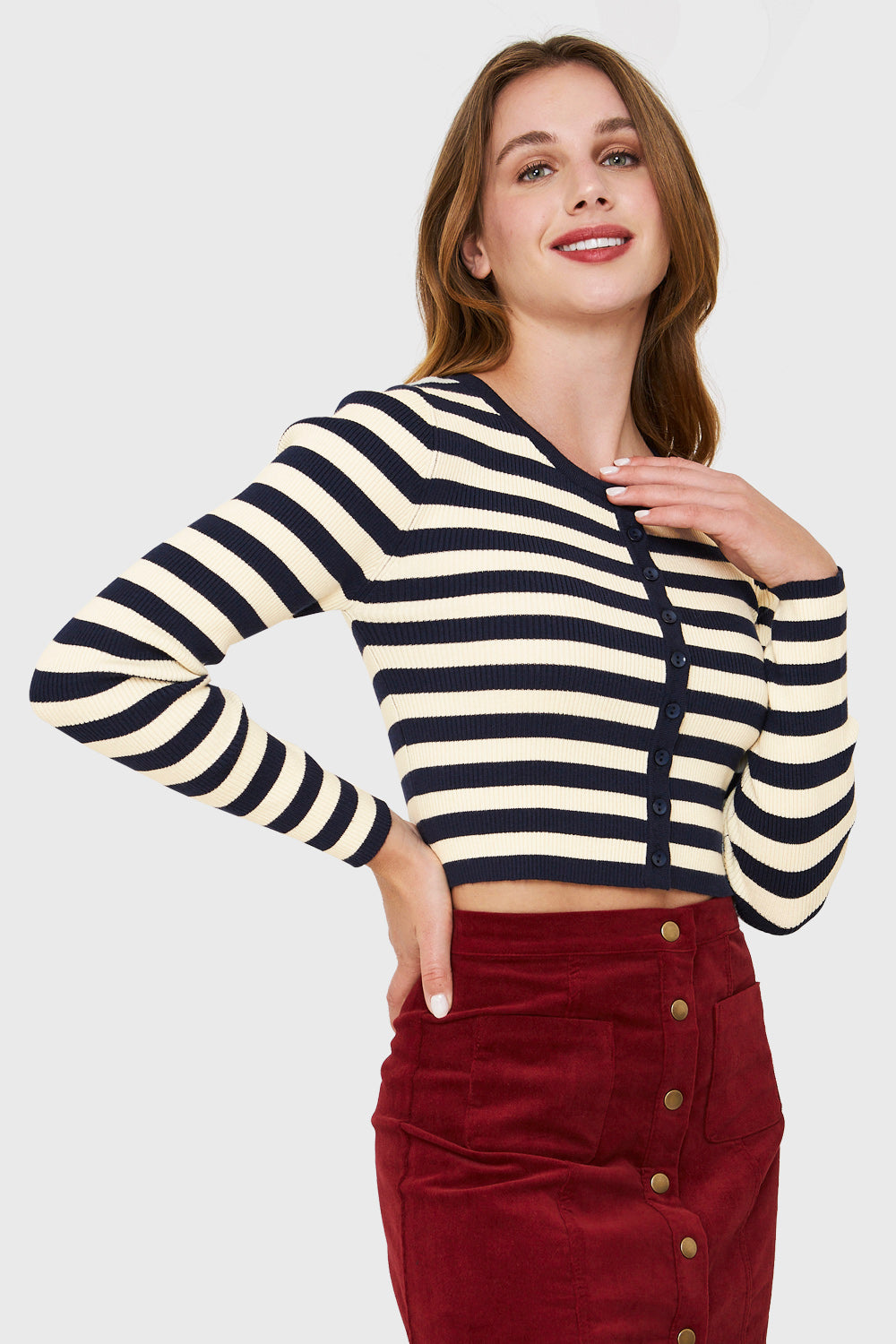 Características: Crop top rayado manga larga. Botones funcionales. Cuello redondo.