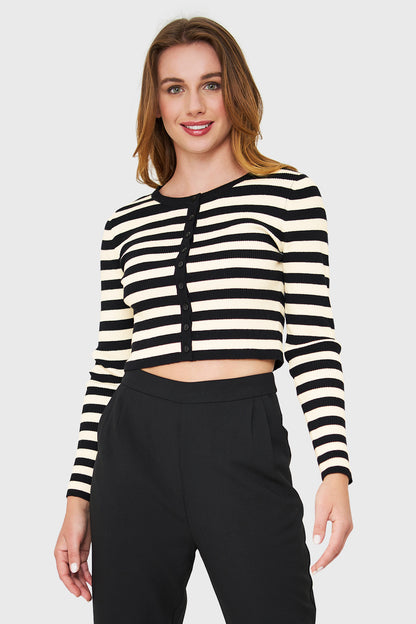 Características: Crop top rayado manga larga. Botones funcionales. Cuello redondo.